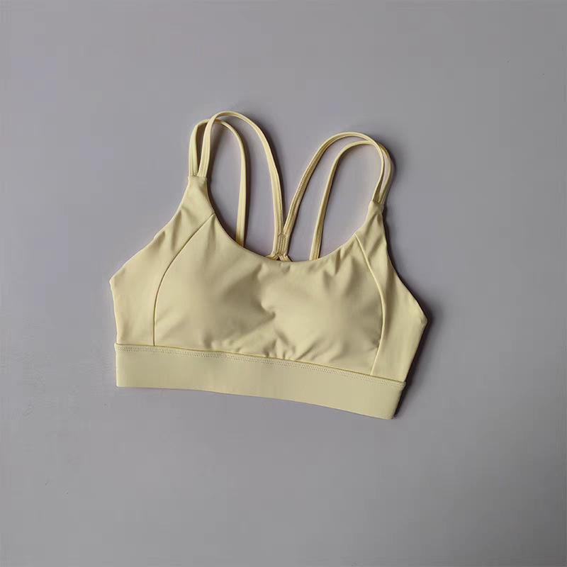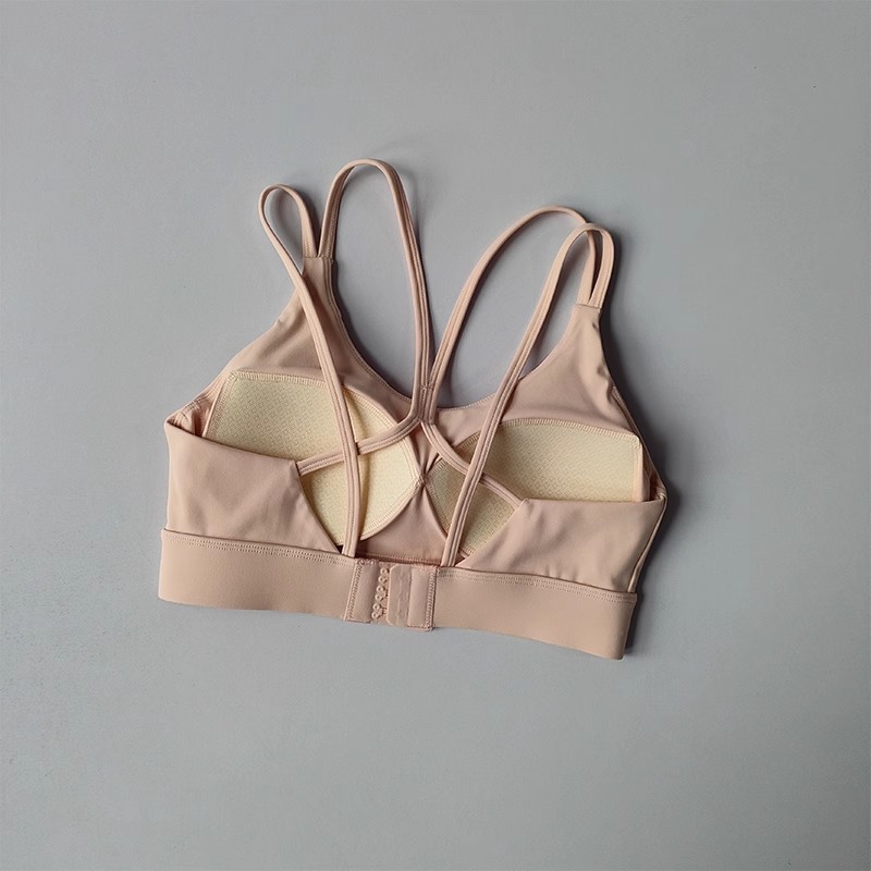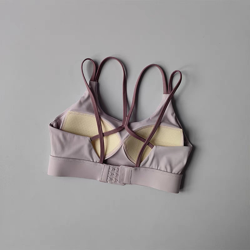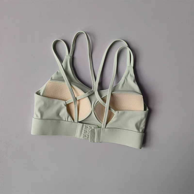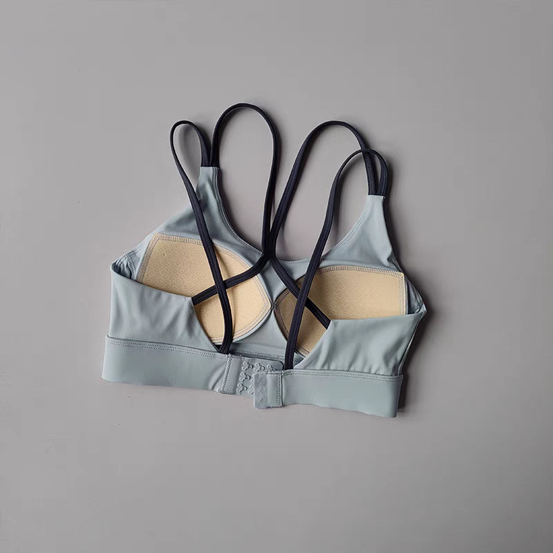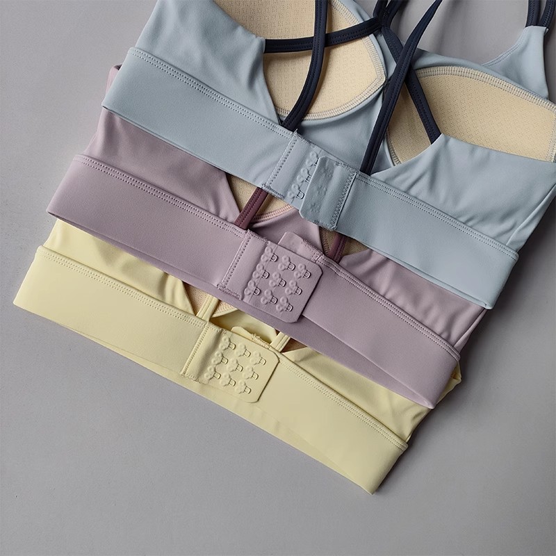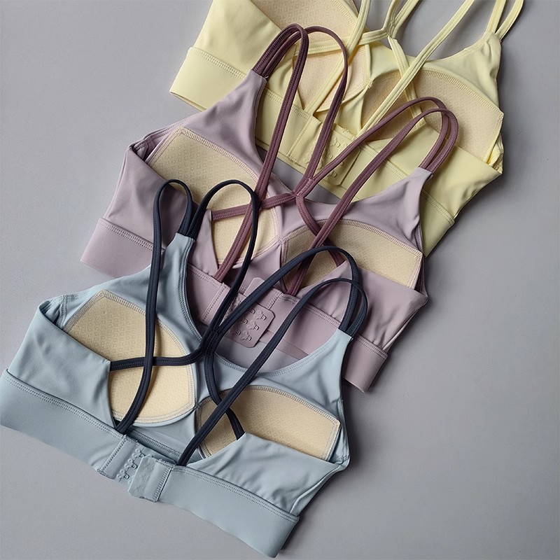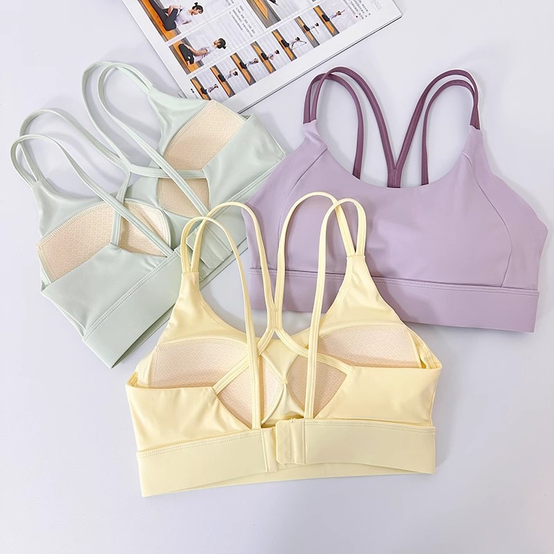 고강도 충격 방지 푸쉬업 스포츠 브라, 일체형 고정 가슴 패드, 얇은 어깨끈, 크로스백 피트니스 브라