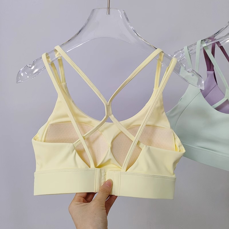 고강도 충격 방지 푸쉬업 스포츠 브라, 일체형 고정 가슴 패드, 얇은 어깨끈, 크로스백 피트니스 브라스토어 가기