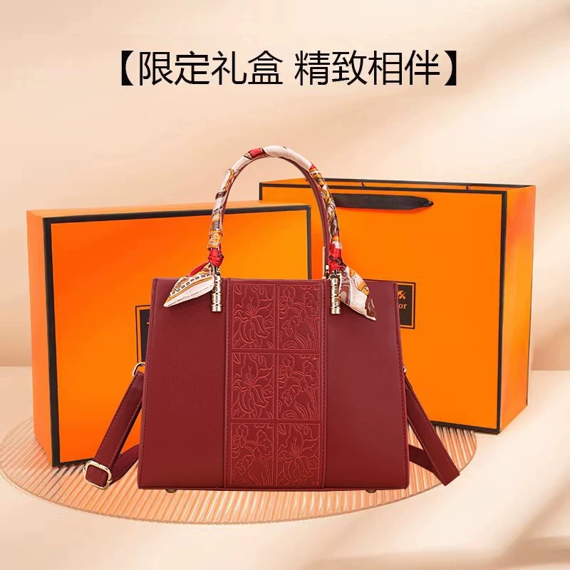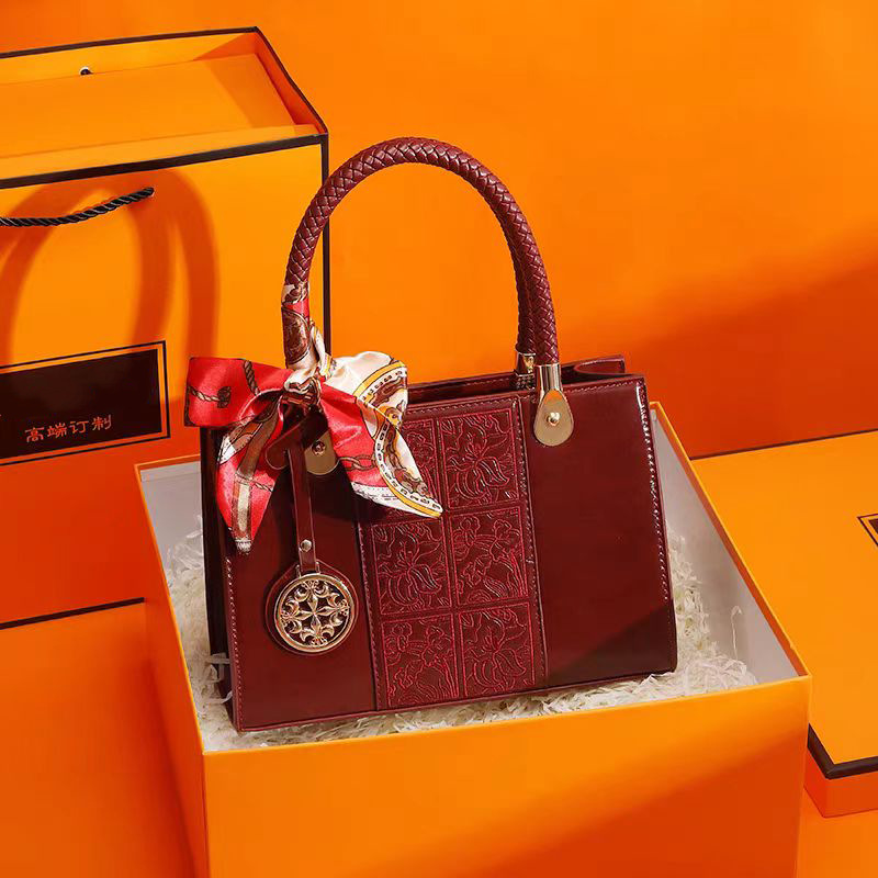 • 8035-1 오일 왁스 레드 오렌지 선물 상자 실크 스카프 + 선물 가방 + 선물 상자 + 장식품