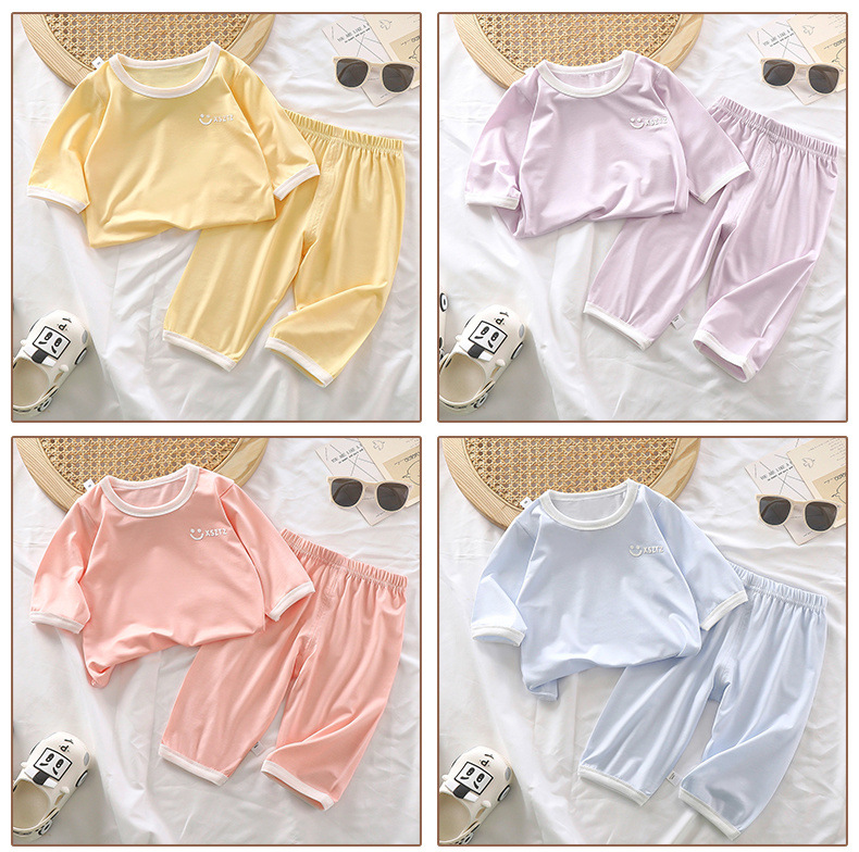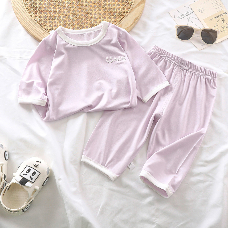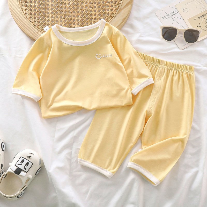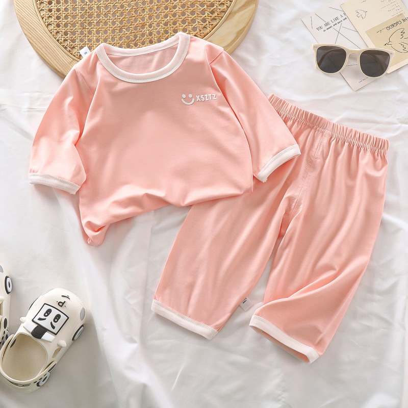 어린이 여름 새로운 에어컨 얇은 잠옷 소년과 소녀 아기 7부 소매 홈