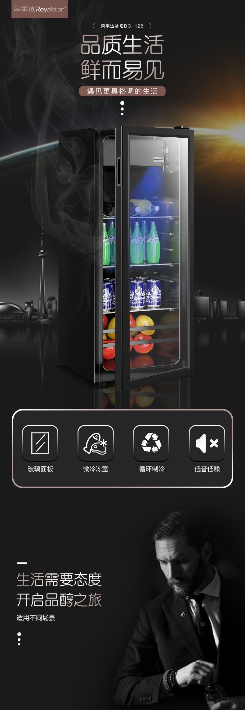 Royalstar 아이스 바 단일 도어 소형 레드 와인 캐비닛 홈 신선 유지 냉장고 사무실 거실 투명 음료 냉장고