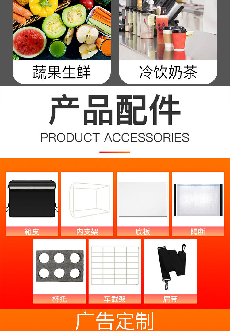 • 62L 테이크아웃 박스 + 패드 + 파티션 + 컵홀더 + 프레임