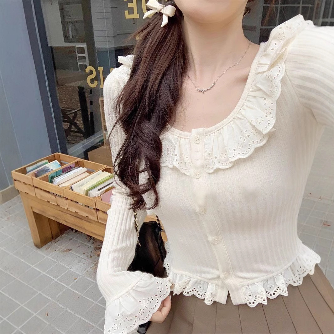 레이스 레이스 칼라 스웨터 여성의 가을과 겨울 새로운 프랑스 레트로 스타일 슬림 핏 슬리밍 올매치 베이스 셔츠 탑