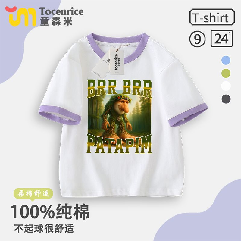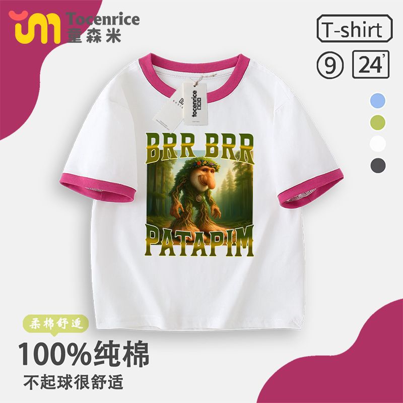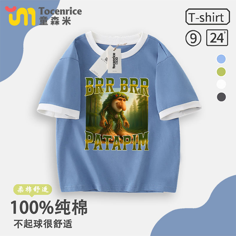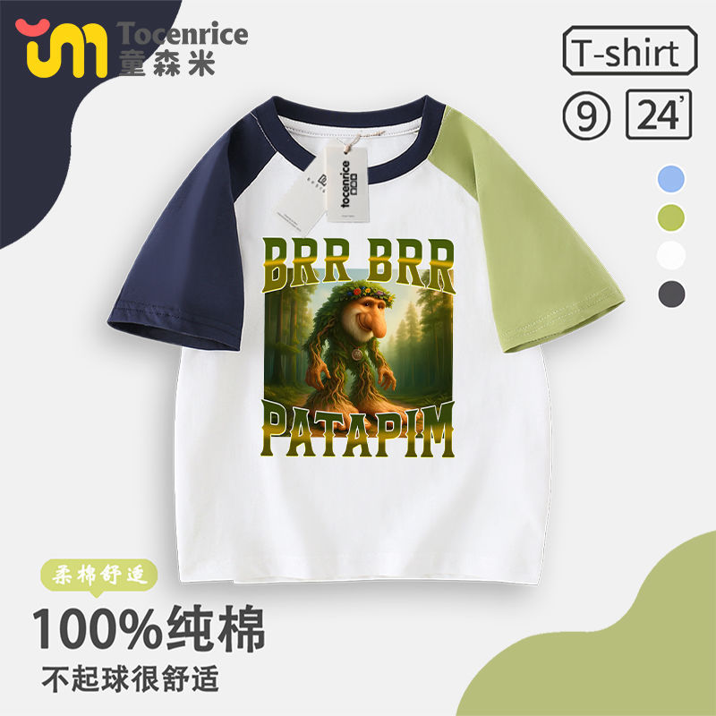 Tungtungsahur Tongtong Brother Stick Man Boys 'T 셔츠 짧은 소매 여름 중대형 어린이 최고 어린이 순면 패션