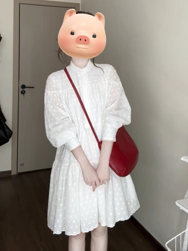 프랑스 스타일 긴 소매 화이트 원피스 여성 봄 2025 새로운 스타일 느슨한 슬림 핏 인형 치마스토어 가기