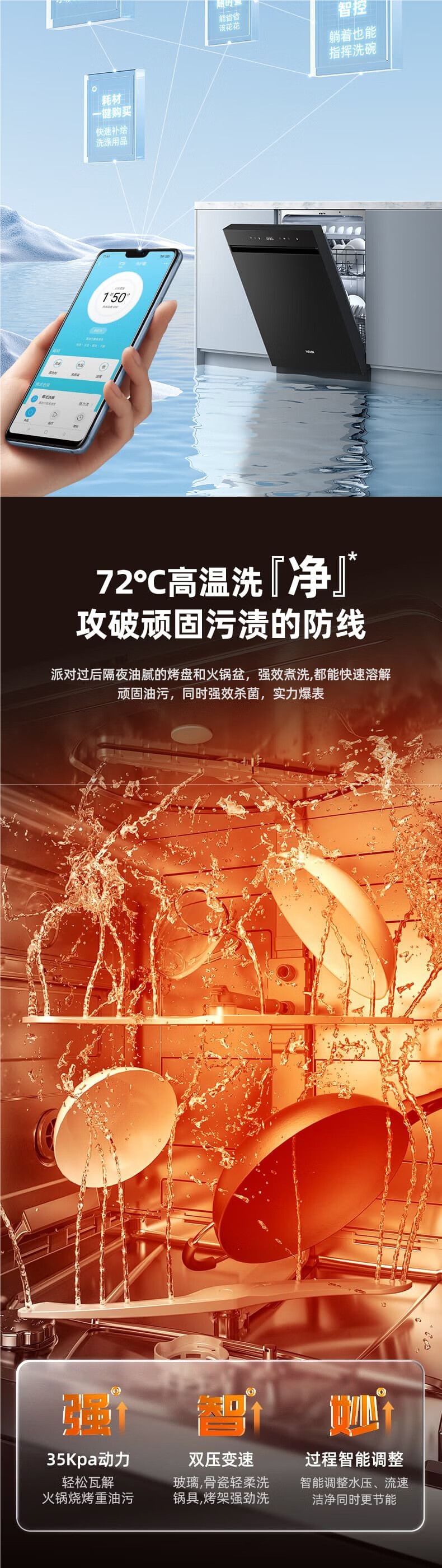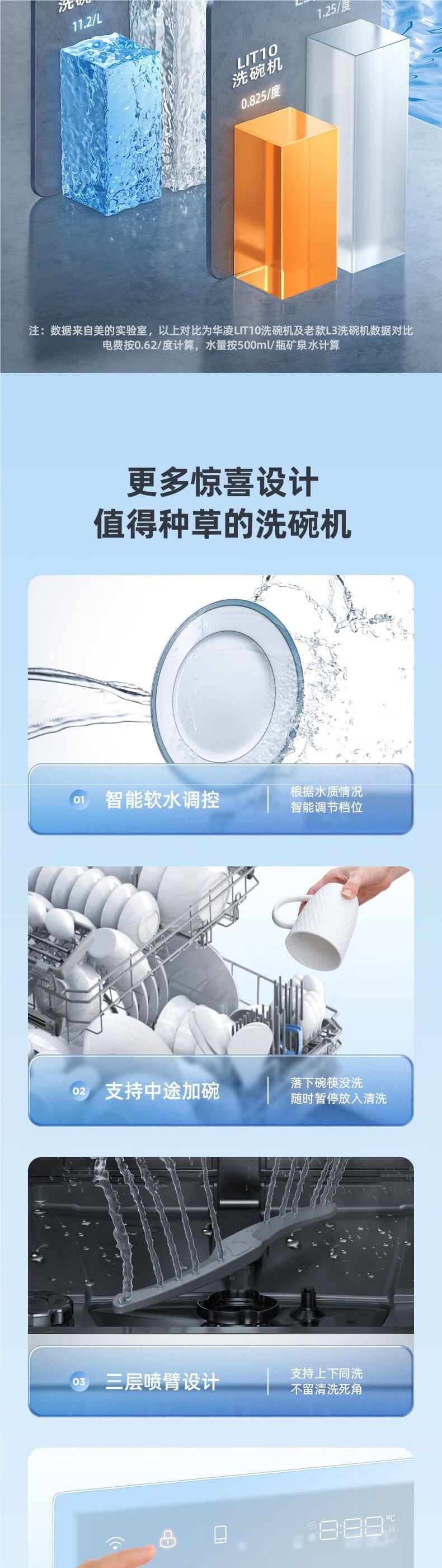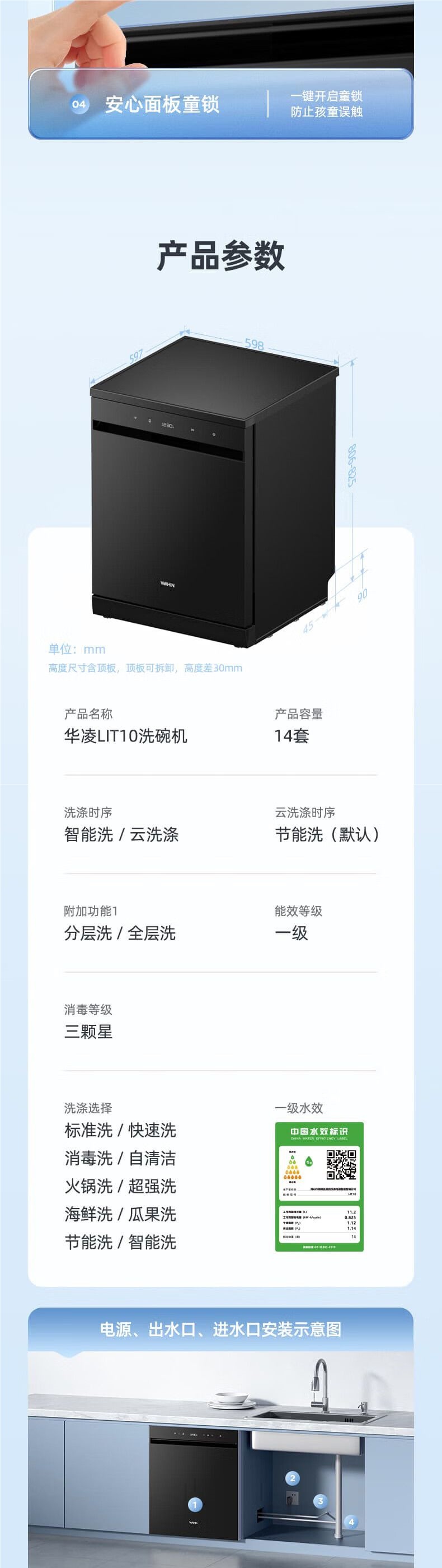 Hualing LIT10 식기 세척기 14 세트 자동 가정용 테이블 내장 이중 용도 계층화 된 세척 효율