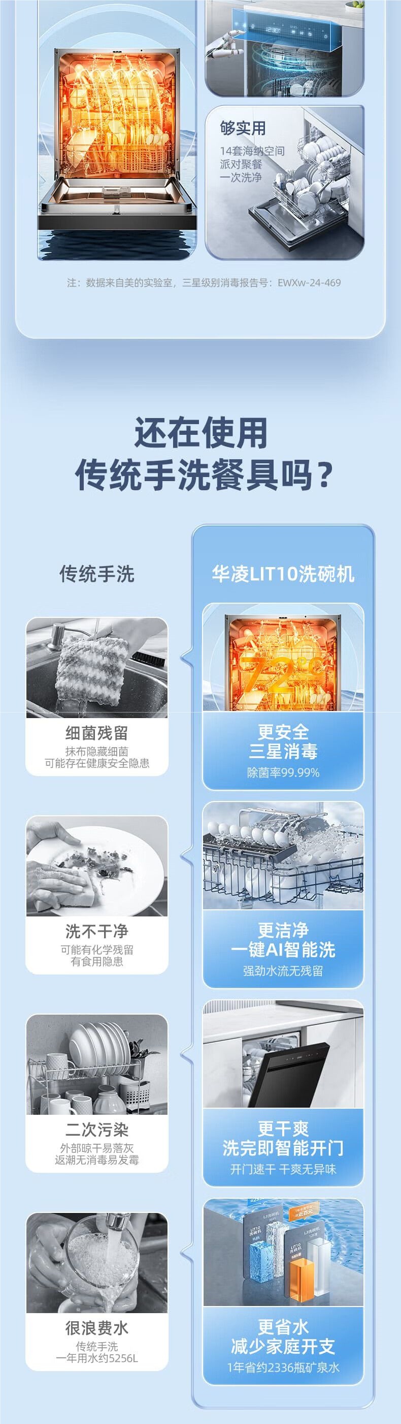 Hualing LIT10 식기 세척기 14 세트 자동 가정용 테이블 내장 이중 용도 계층화 된 세척 효율스토어 가기