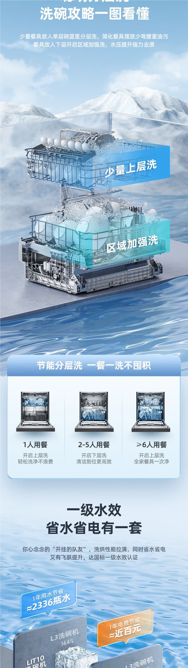 • 식기 102개, 14세트, 이중 용도, 지능형 계층 세척