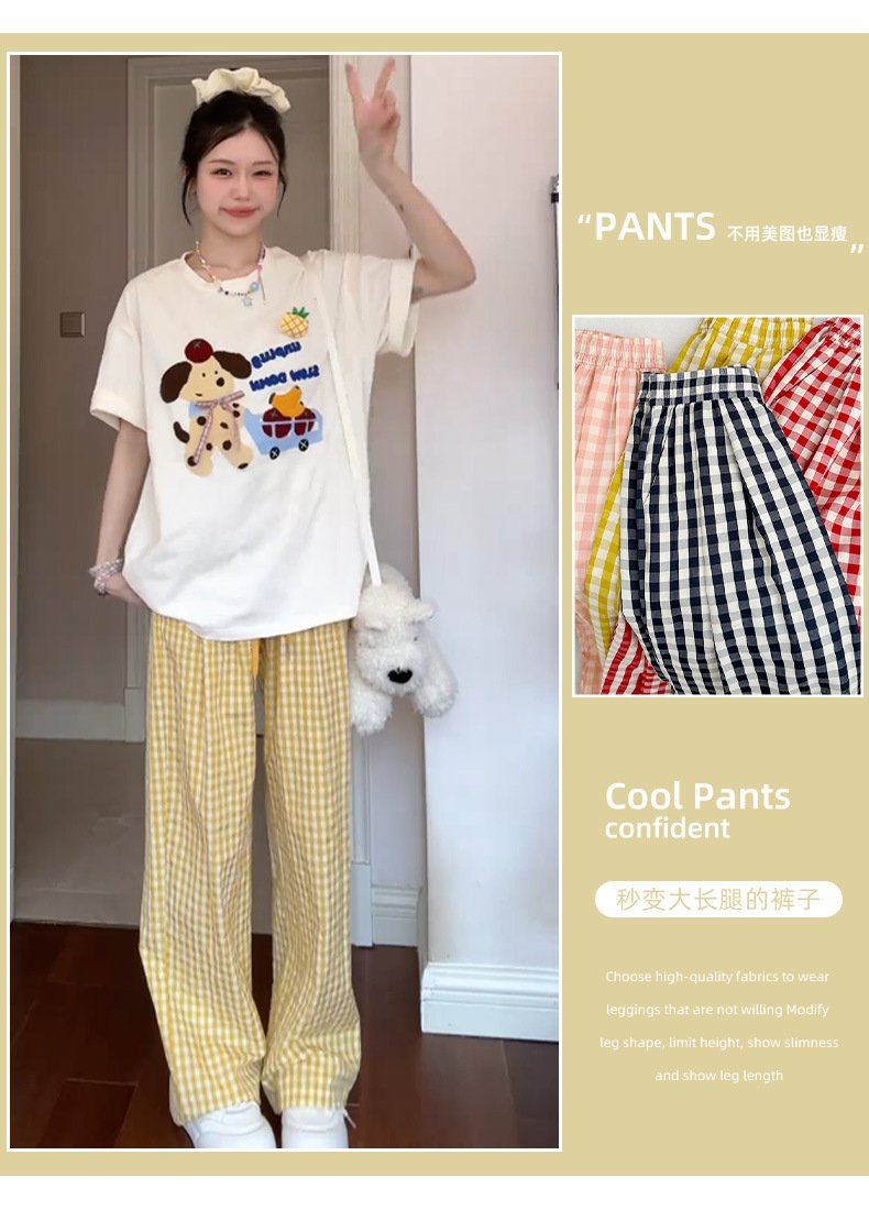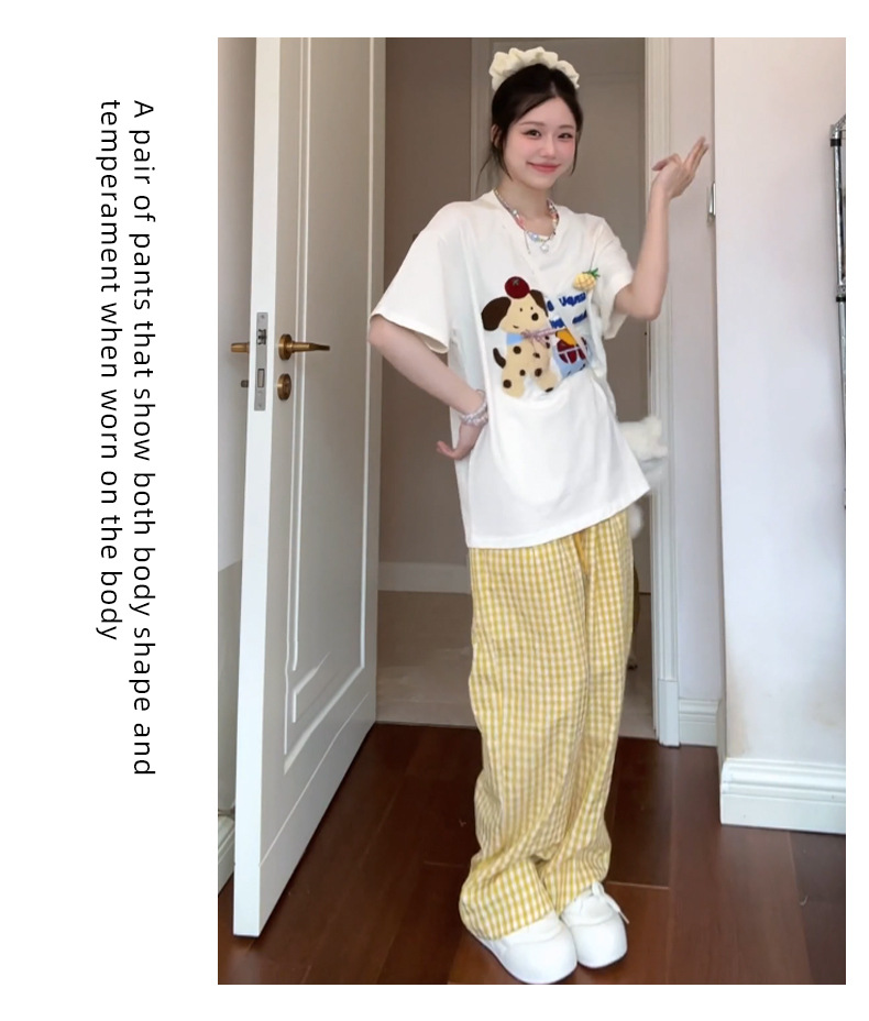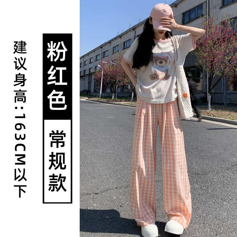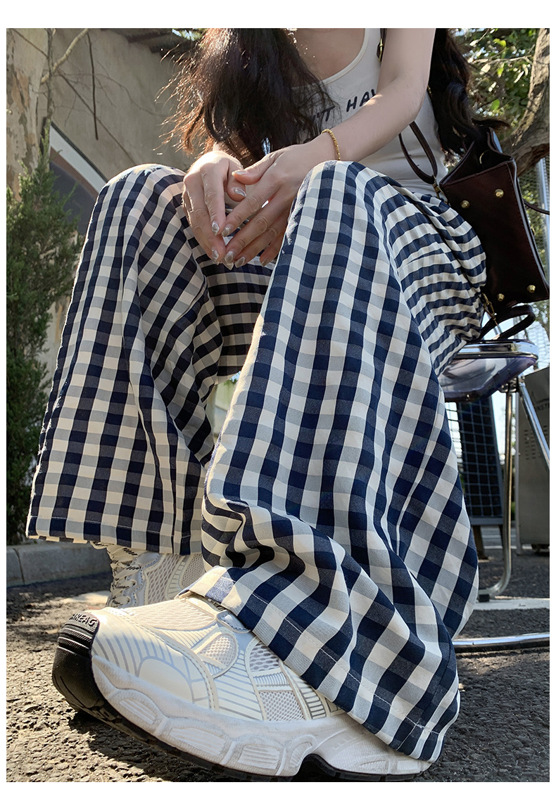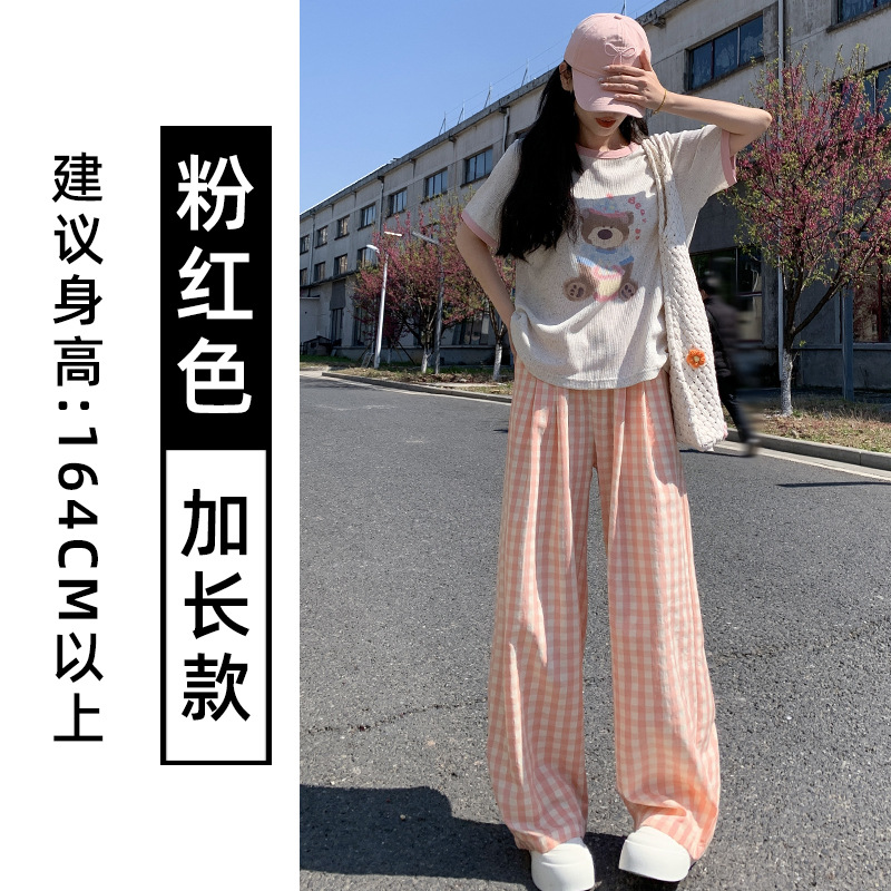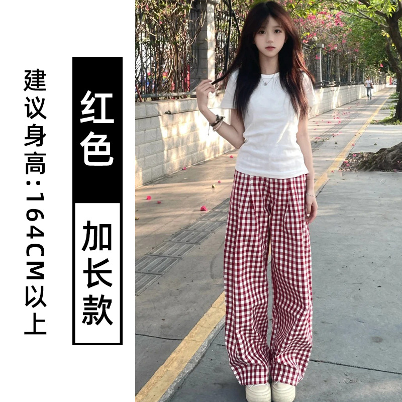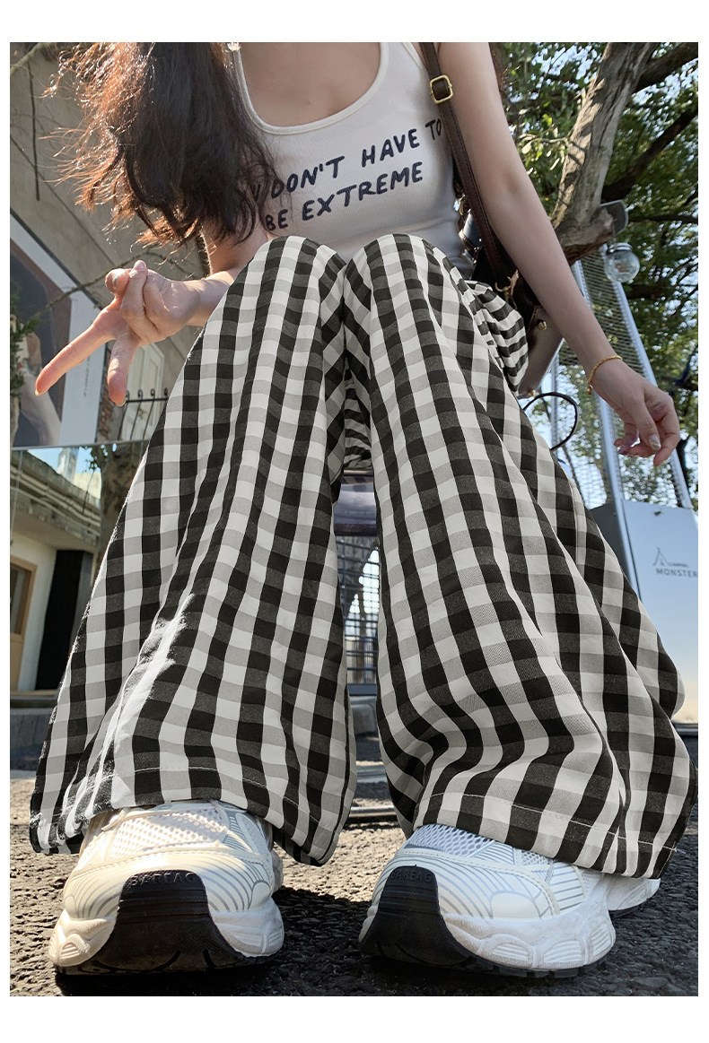 노란 격자 무늬 바지 여성 여름 2025 새로운 높은 허리 슬리밍 느슨한 복용량 캐주얼 스타일 아이스 실크 선 스크린 와이드 다리 바지스토어 가기