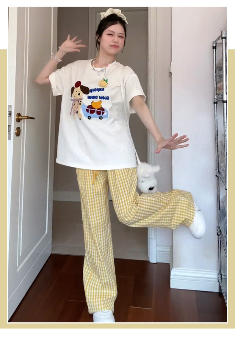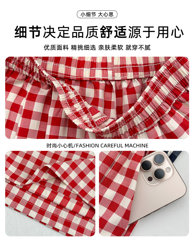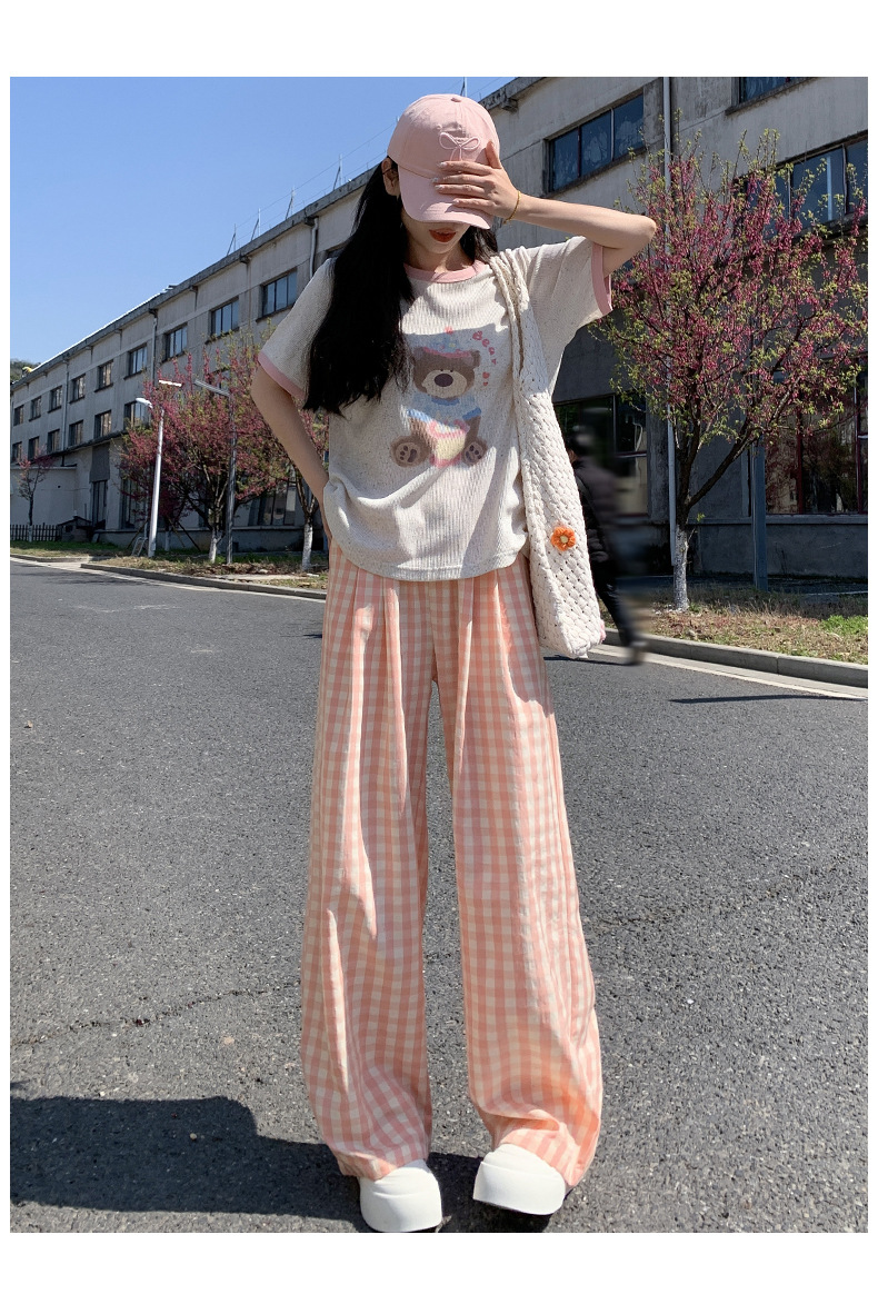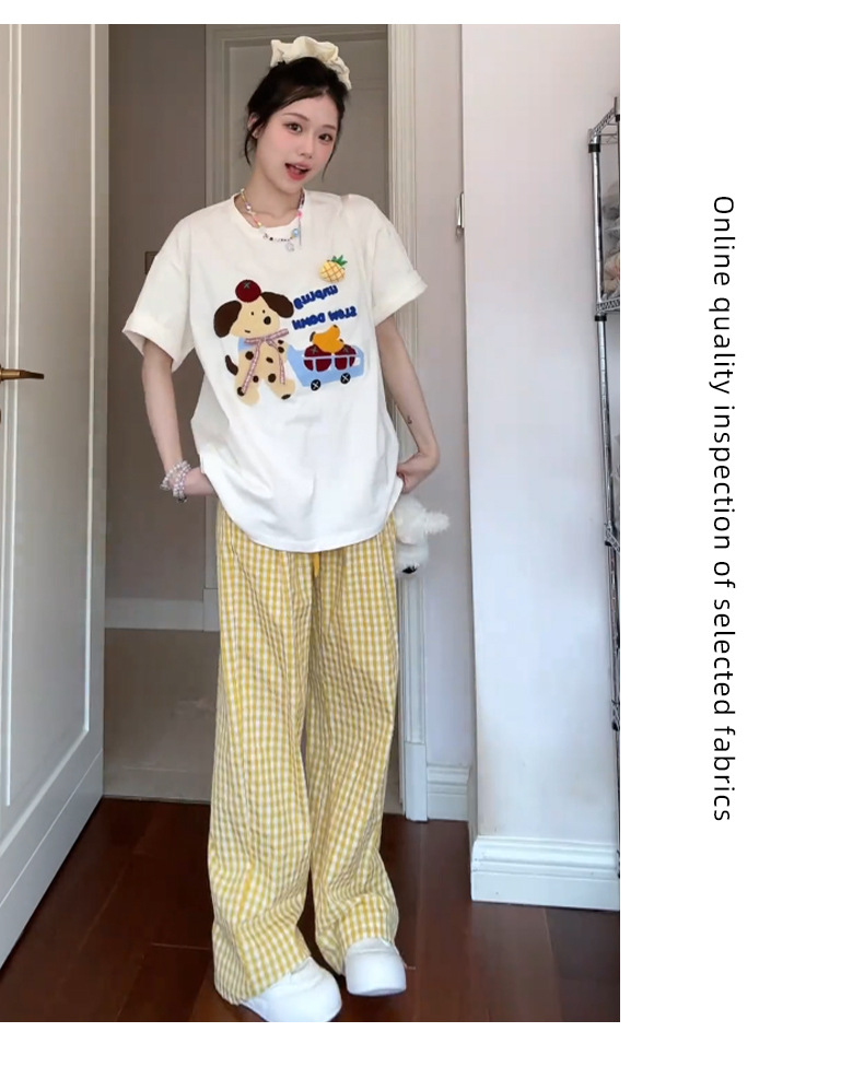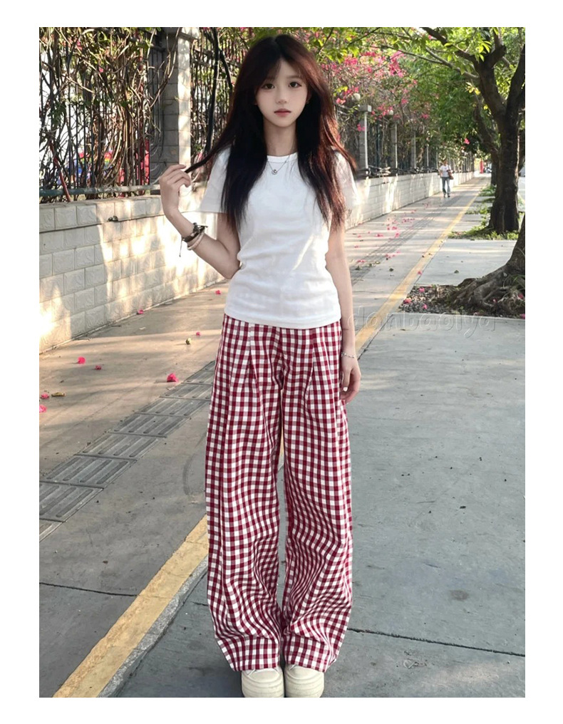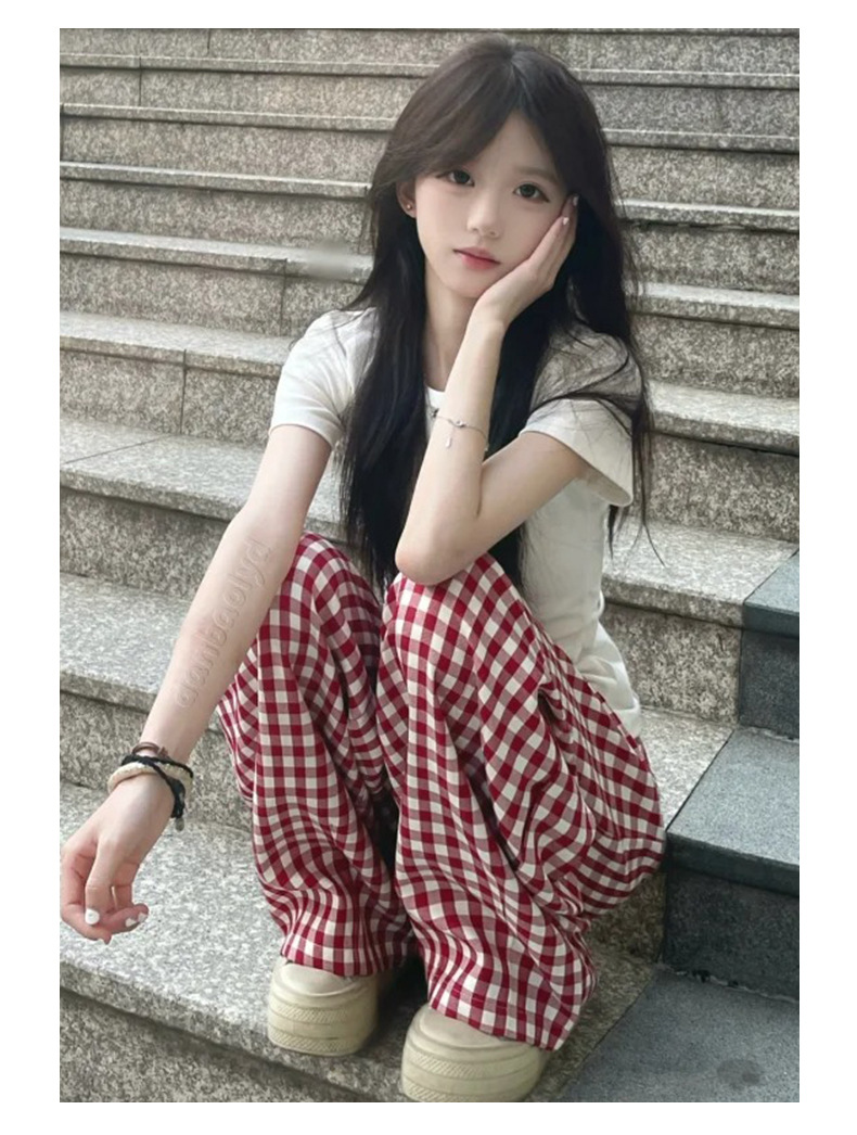 노란 격자 무늬 바지 여성 여름 2025 새로운 높은 허리 슬리밍 느슨한 복용량 캐주얼 스타일 아이스 실크 선 스크린 와이드 다리 바지스토어 가기