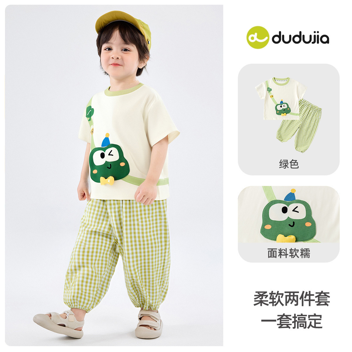 • 녹색 상의 + 녹색 체크 무늬 바지
