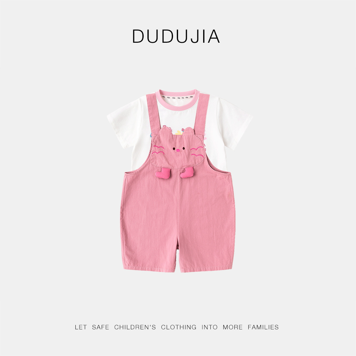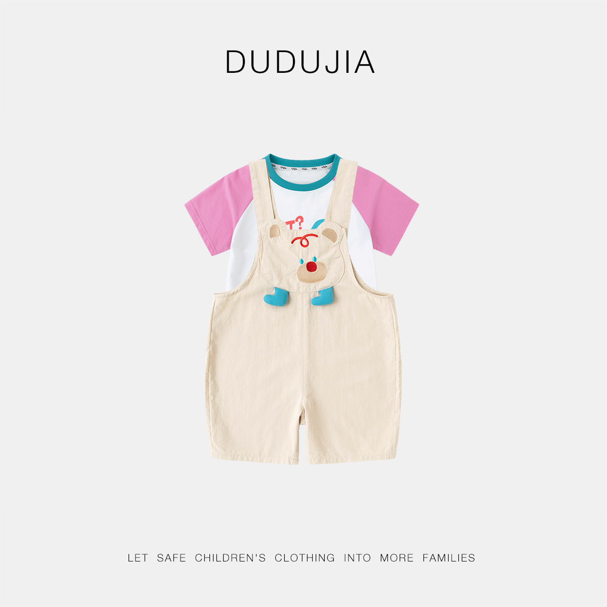 • 핑크색 소매 탑 + 살구색 멜빵바지