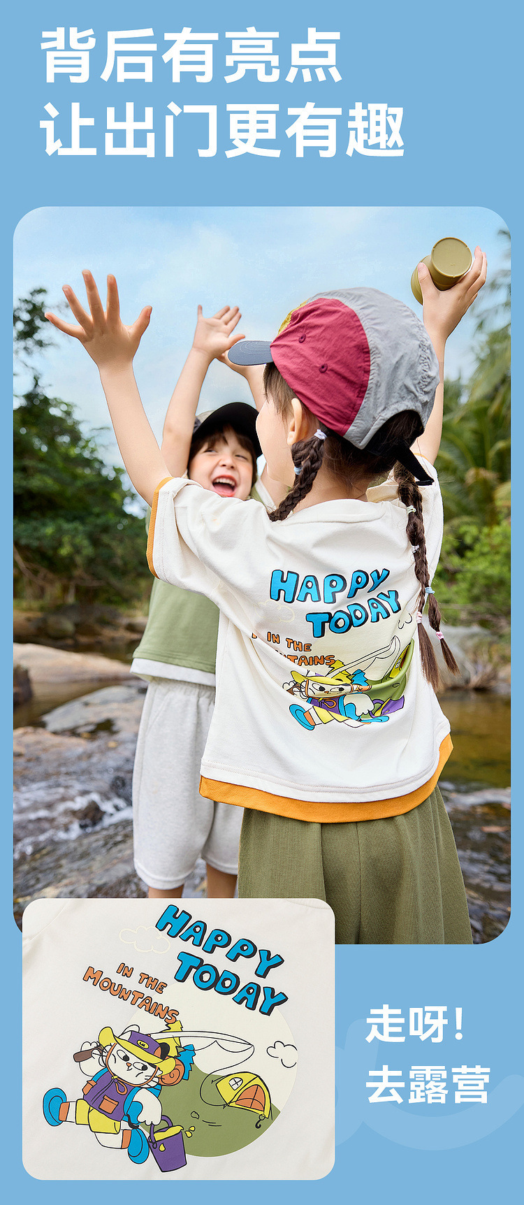 • 파란색 소매 상의 + 살구색 바지