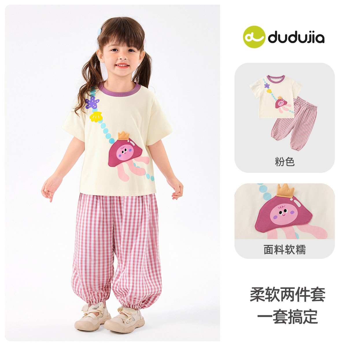 • 핑크 탑 + 핑크 체크 무늬 바지