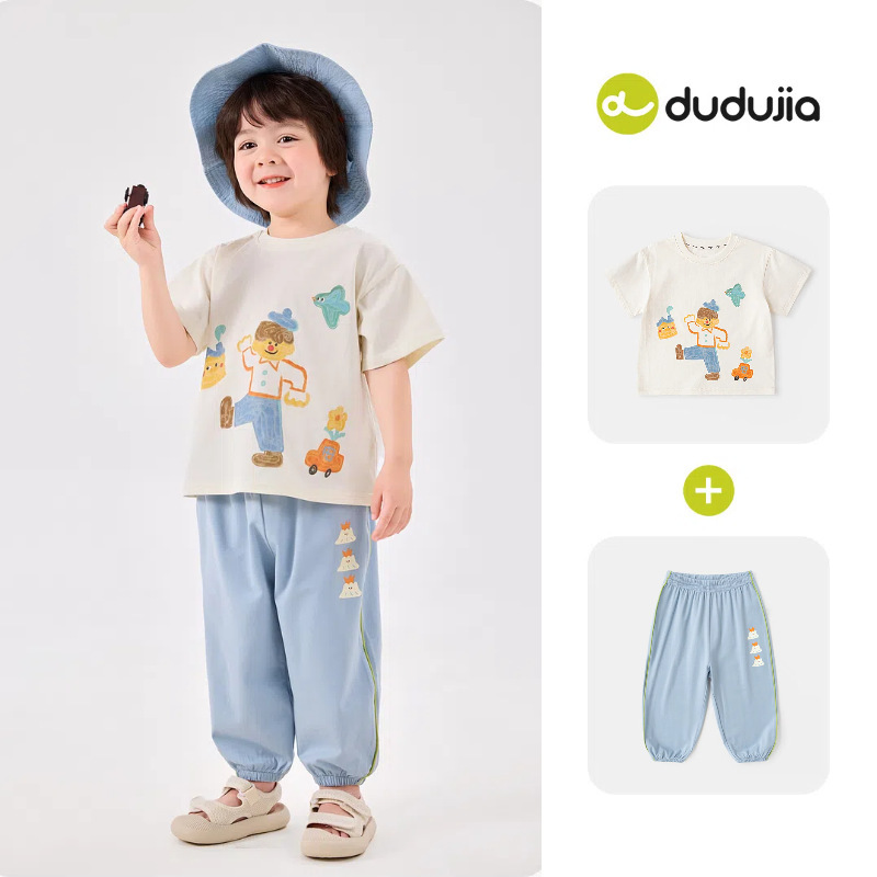 [여름 세트 컬렉션] 낙서 어린이 세트 여름 아기 반팔 바지 남녀 투피스 세트스토어 가기