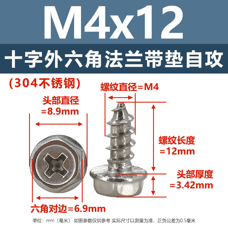 • M4*12 [패드 셀프 태핑 기능이 있는 십자형 외부 육각 플랜지]