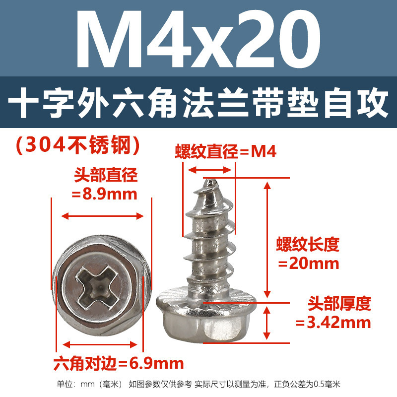 • M3*20 [패드 셀프 태핑 기능이 있는 십자형 외부 육각 플랜지]
