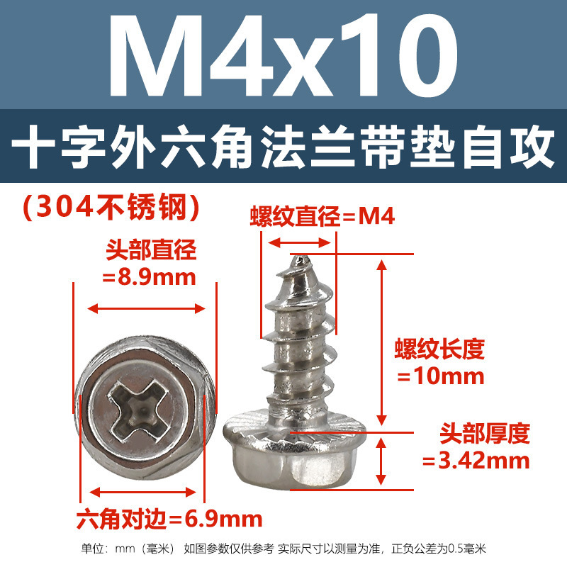 • M4*10 [패드 셀프 태핑 기능이 있는 십자형 외부 육각 플랜지]