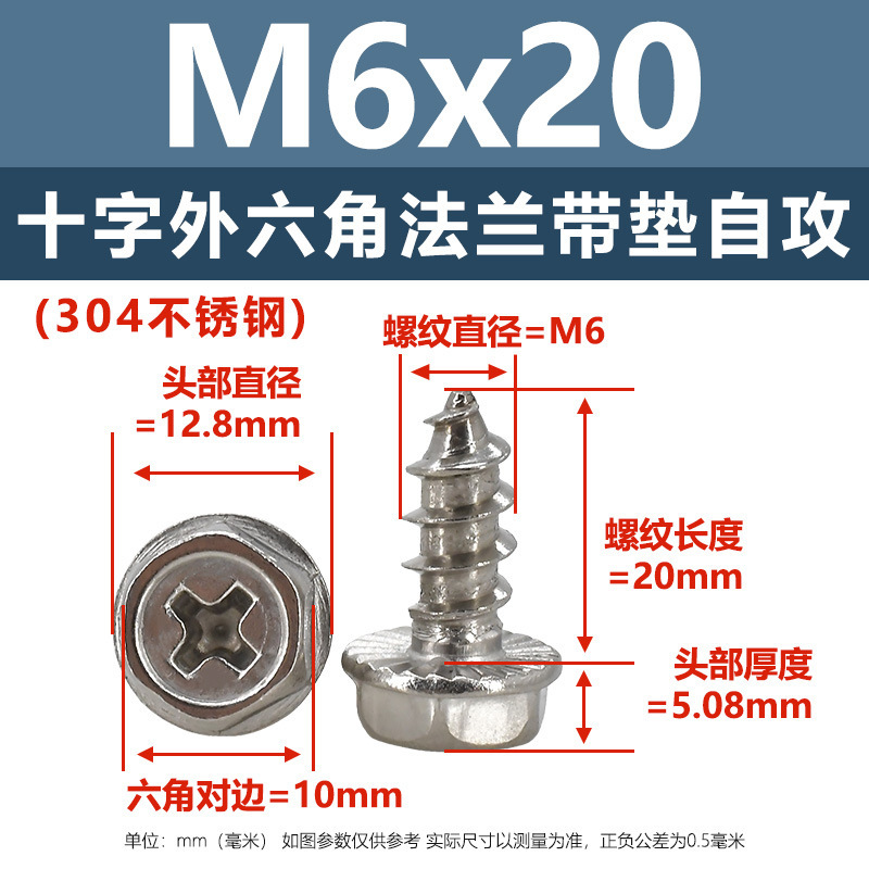 • M6*20 [패드 셀프 태핑 기능이 있는 십자형 외부 육각 플랜지]
