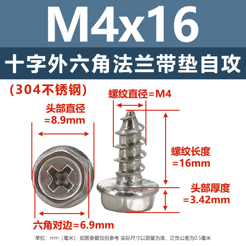 • M4*16 [패드 셀프 태핑 기능이 있는 십자형 외부 육각 플랜지]