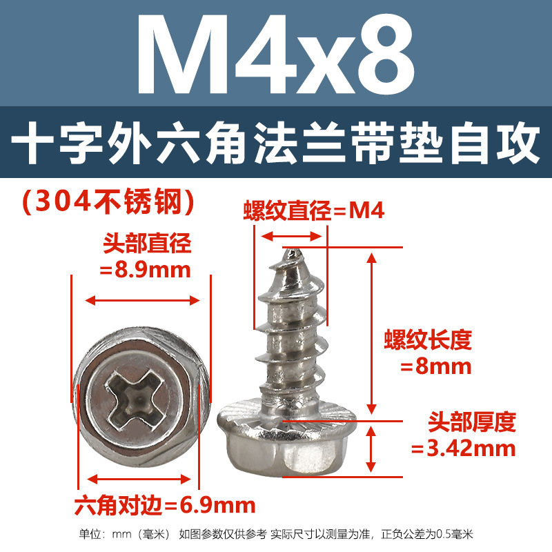 • M4*8 [패드 셀프 태핑 기능이 있는 십자형 육각형 플랜지]