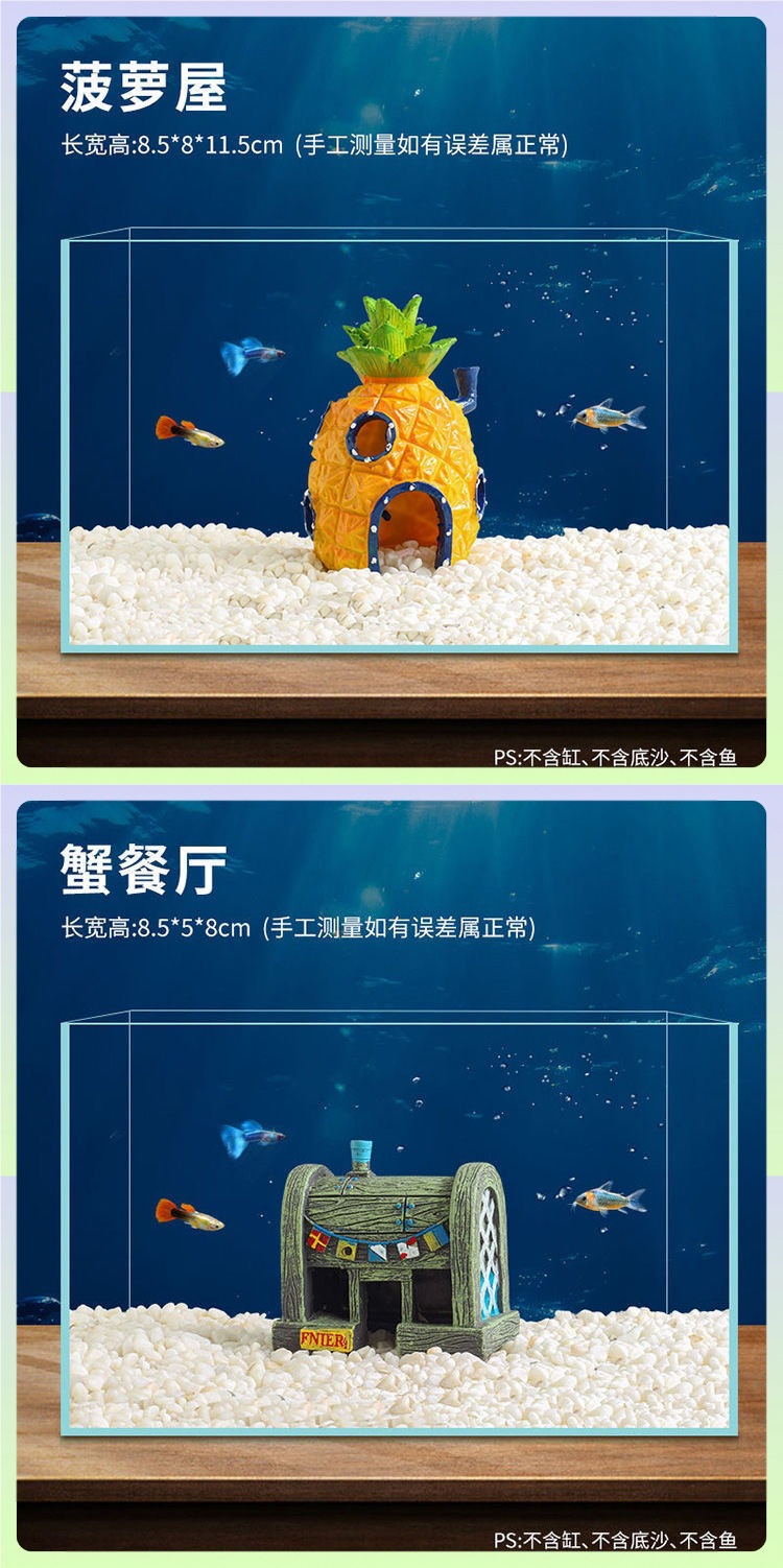수조 파인애플 하우스 조경 장식 장식품 수족관 만화 인형 작은 가정용 스폰지 밥 피크닉 하우스스토어 가기