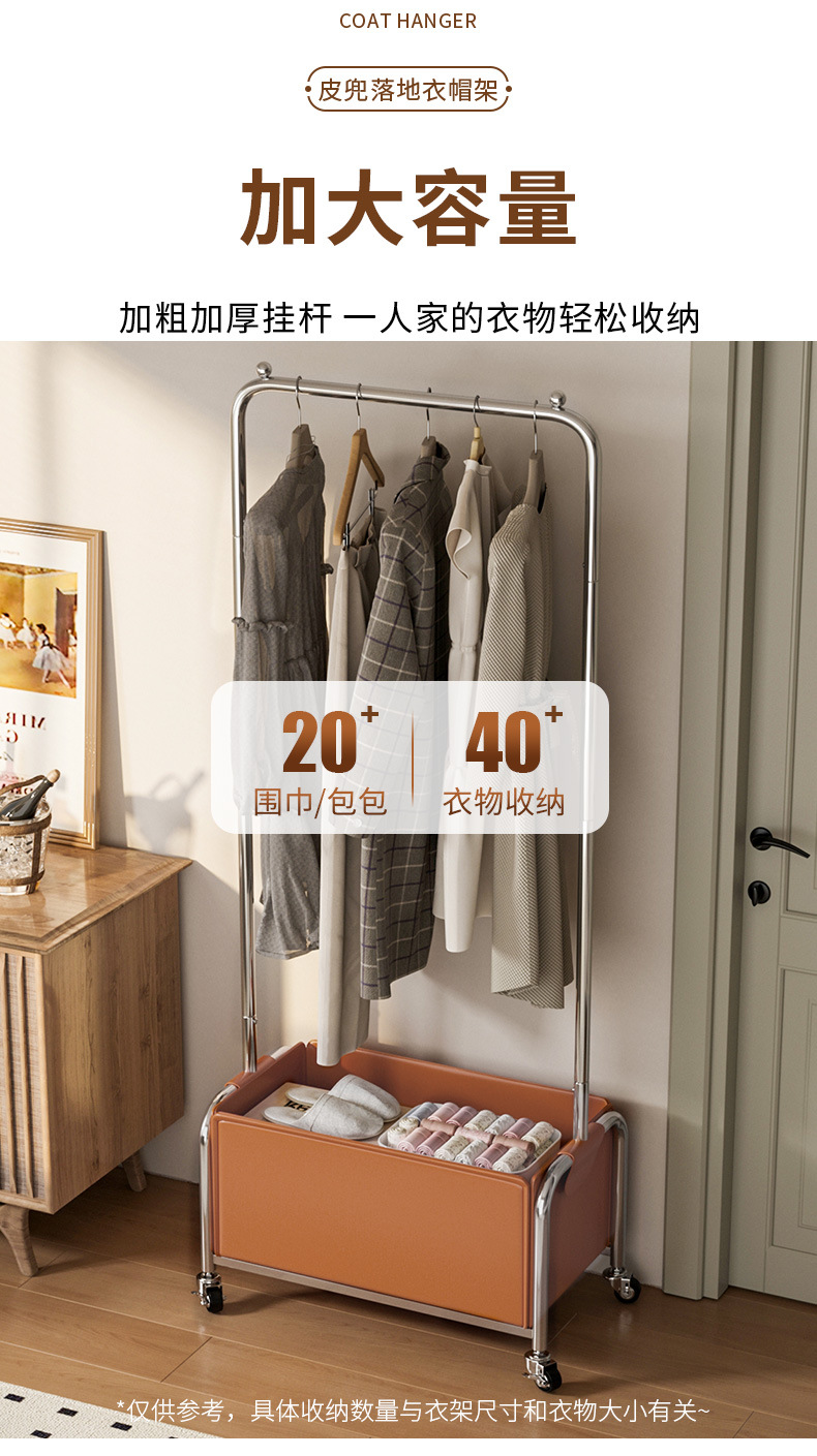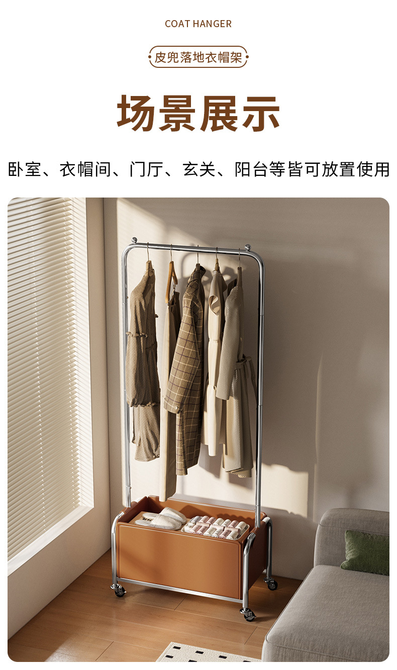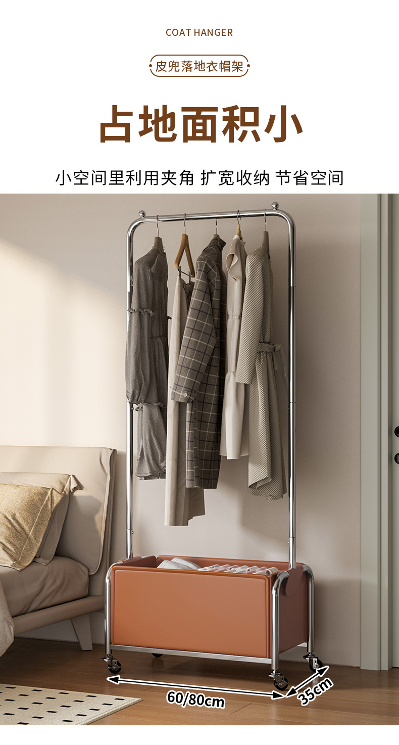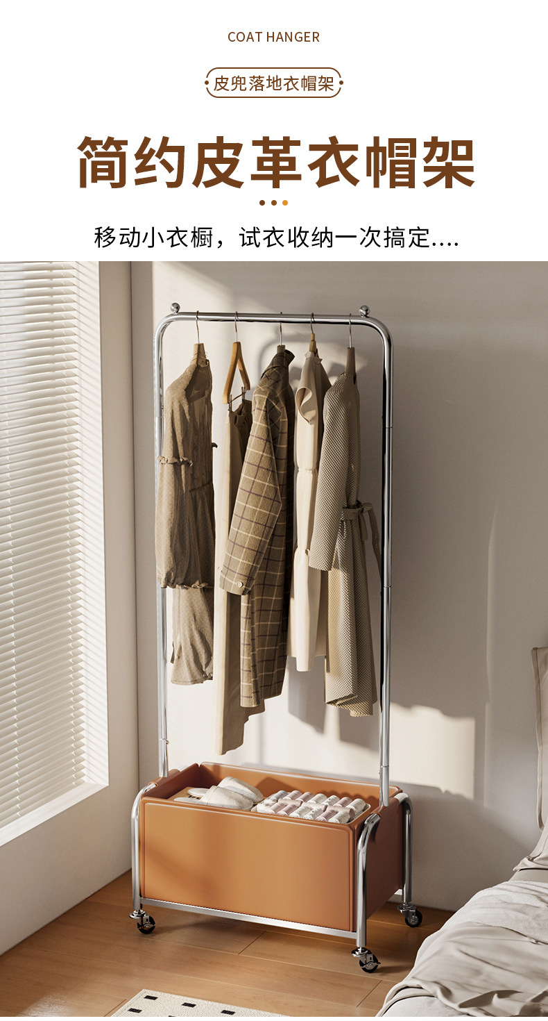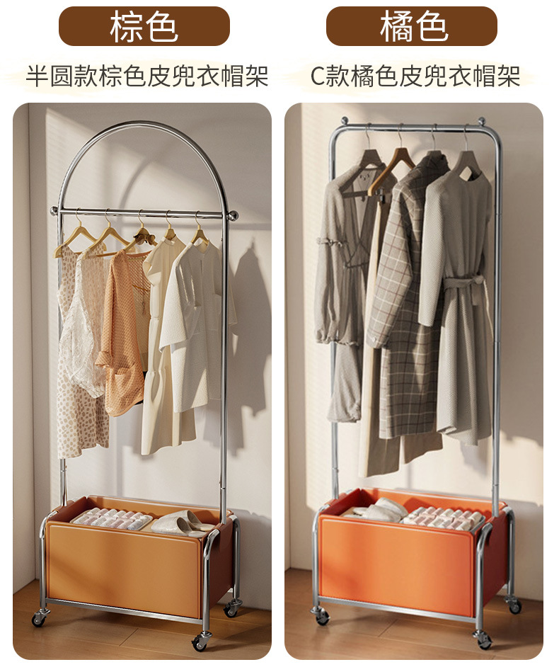 스테인레스 스틸 코트 랙, 보관 랙, 가죽 프레임 옷걸이, 침실 침대 옆 이동식 옷걸이 도매스토어 가기