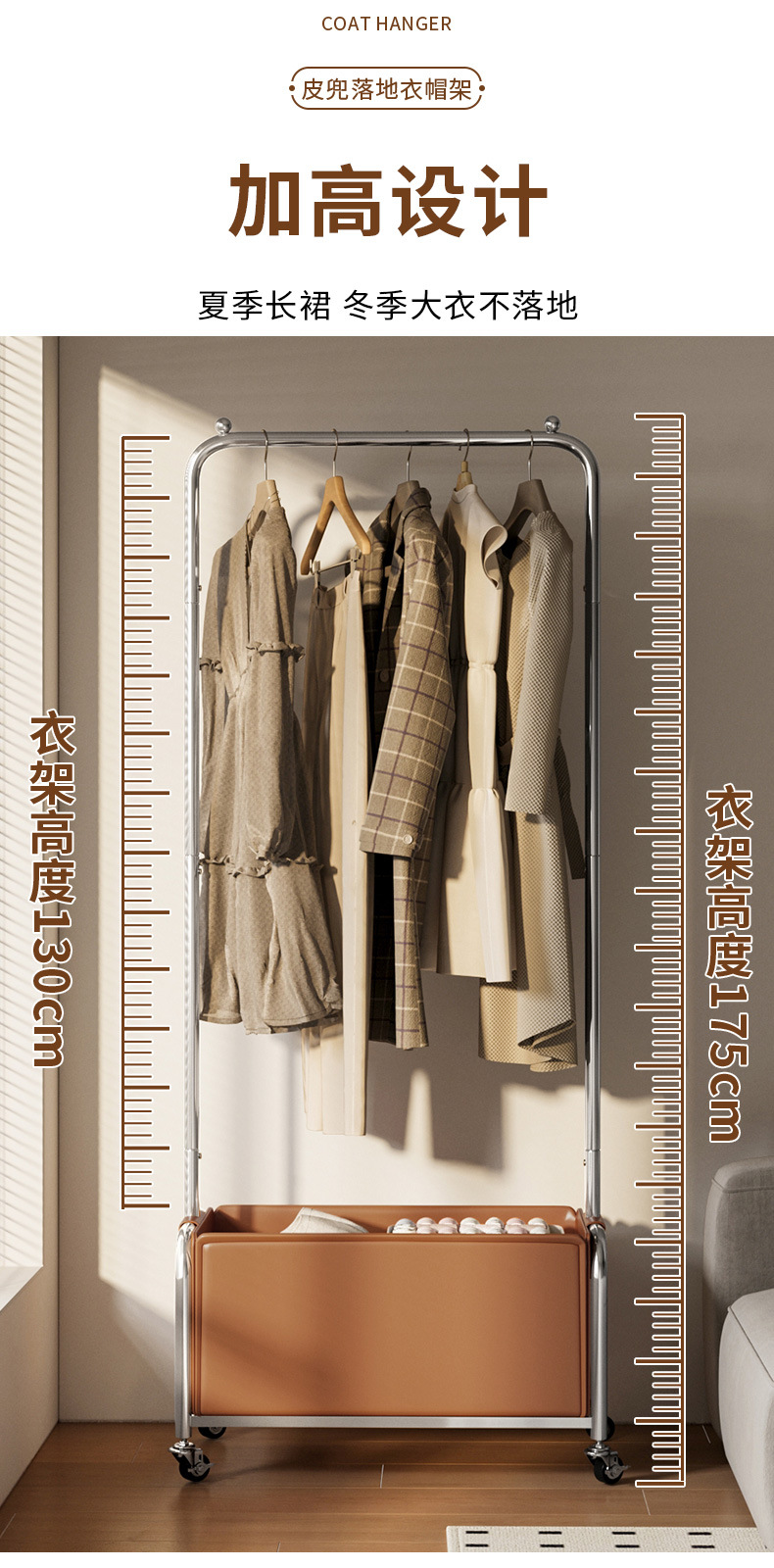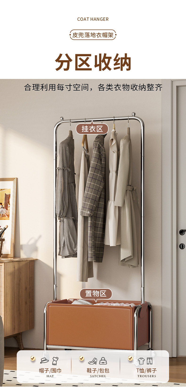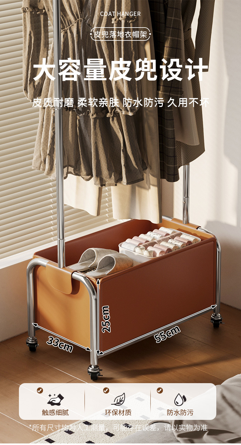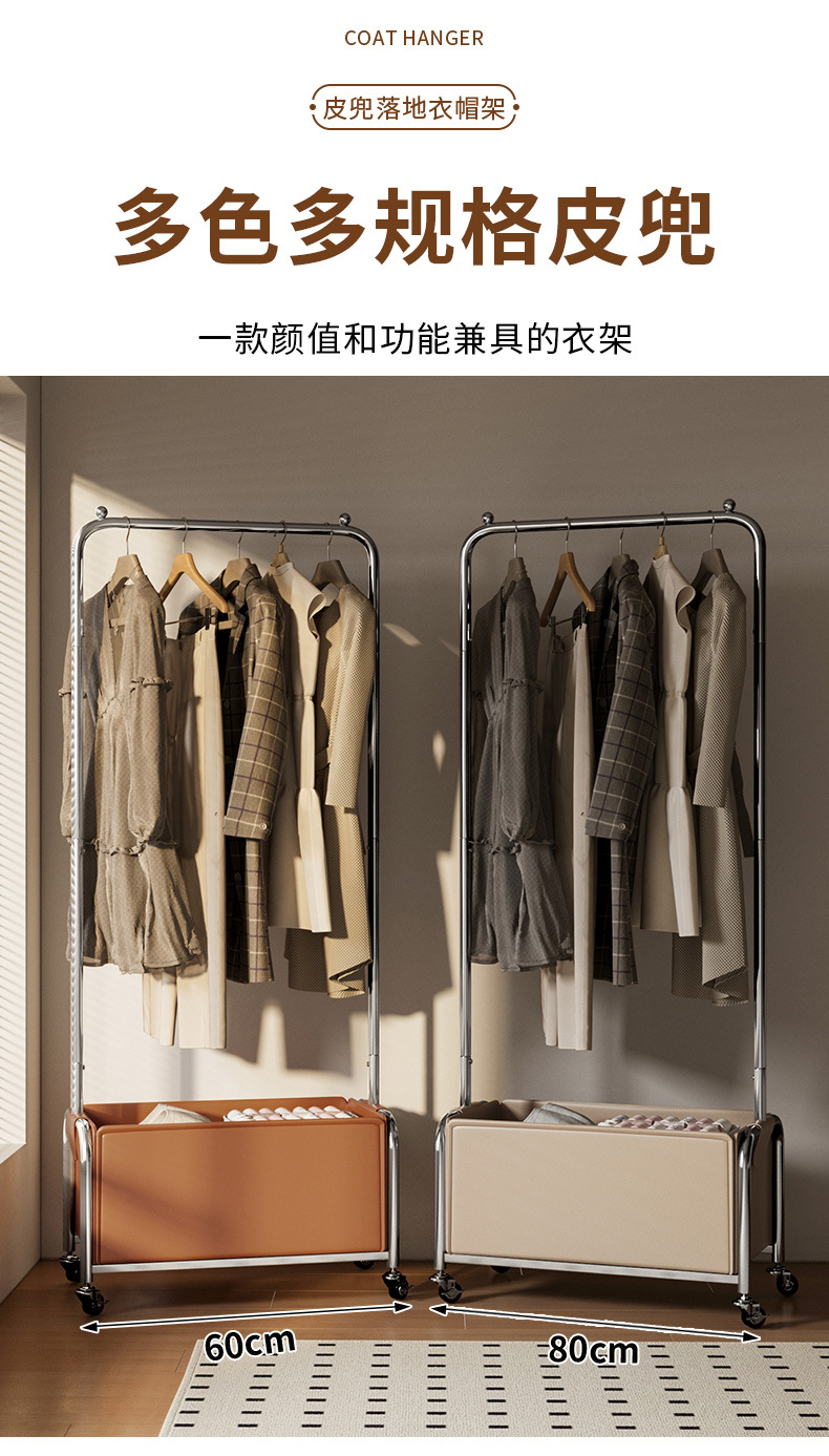 스테인레스 스틸 코트 랙, 보관 랙, 가죽 프레임 옷걸이, 침실 침대 옆 이동식 옷걸이 도매스토어 가기
