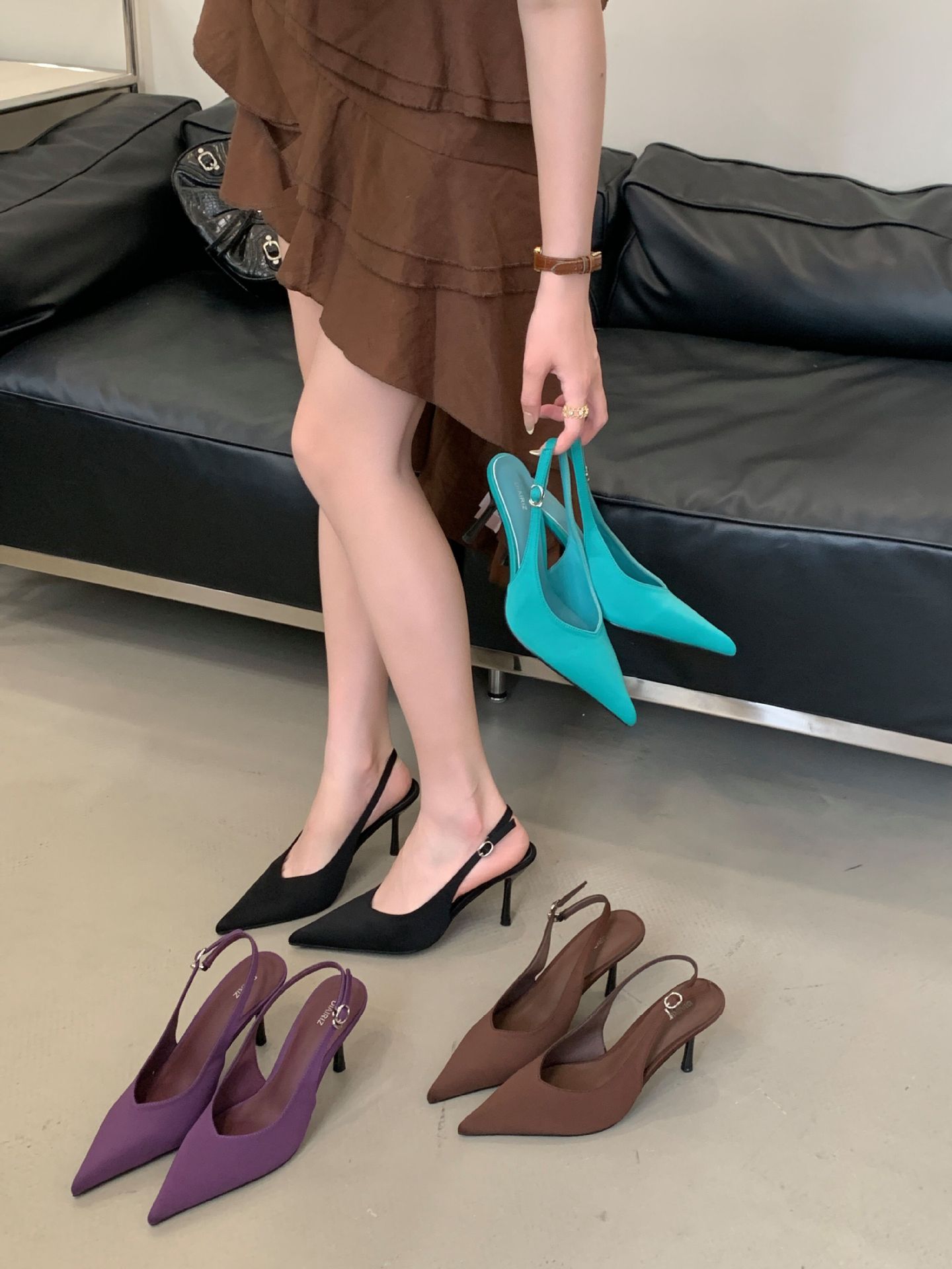 니치 하이힐, 스틸레토 토 샌들, 페어리 슈즈, 2025 신작 봄 여름 기질 포인티드 슈즈스토어 가기