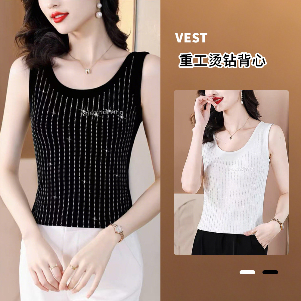여름 신상 캐미솔, 여성용 패셔너블 셔츠, 핫 다이아몬드 슬리밍 밑단 셔츠, 여성용 민소매 이너 탑 및 조끼스토어 가기