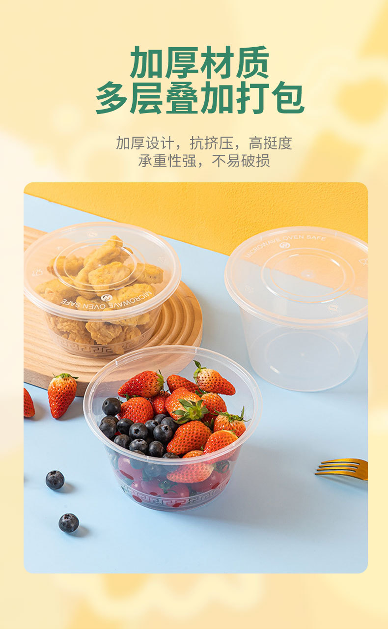 일회용 포장 상자 도시락 테이크 아웃 포장 상자 라운드 스낵 상자 두꺼운 PP 플라스틱 국수 수프 죽 둥근 그릇