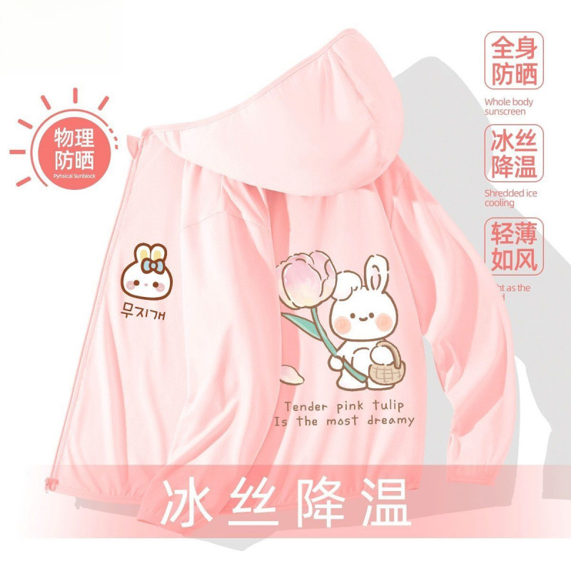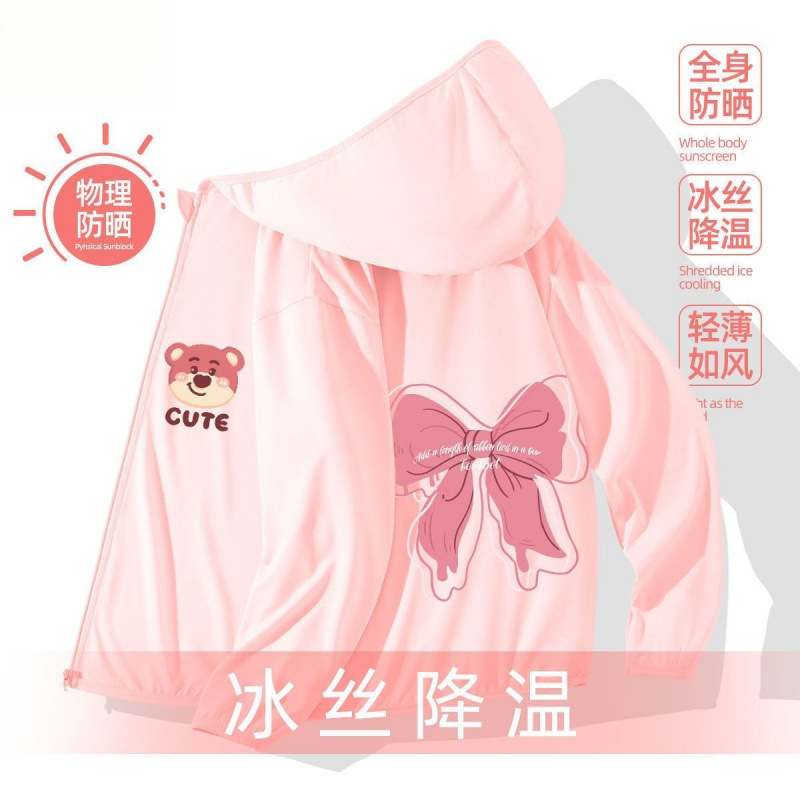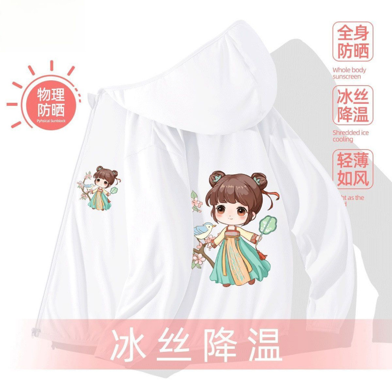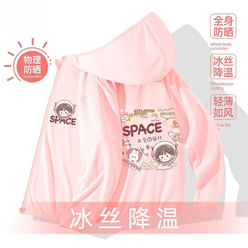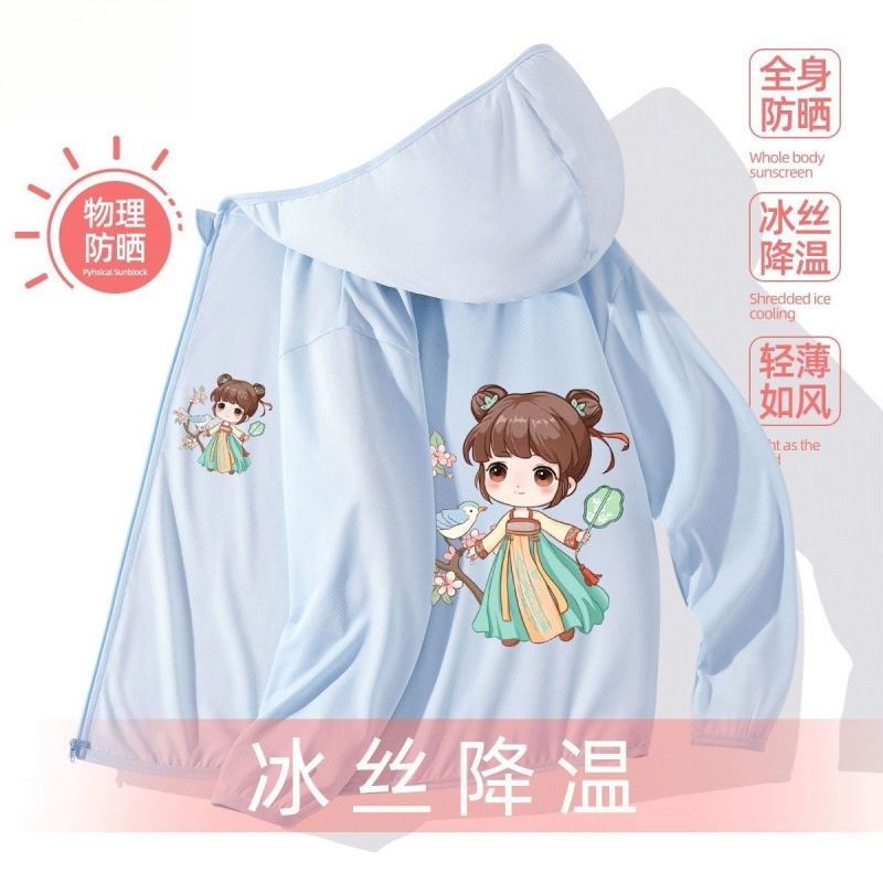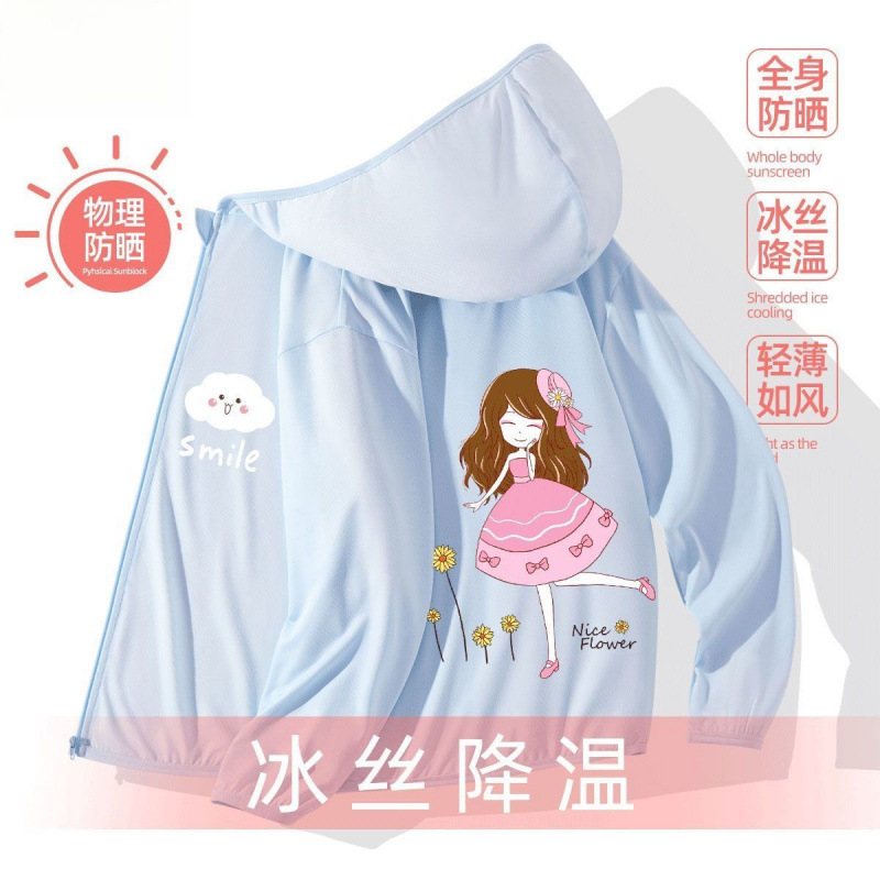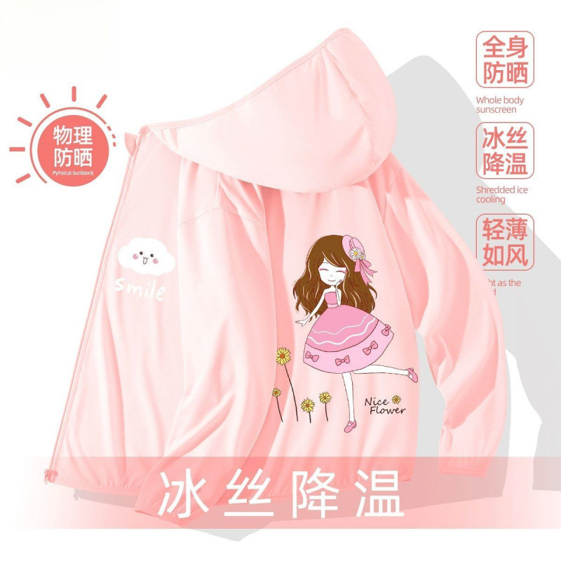 어린이 선 스크린 의류 소녀 여름 얇은 겉옷 여름 코트 아이스 실크 통기성 소녀 선 스크린 의류 UV 보호