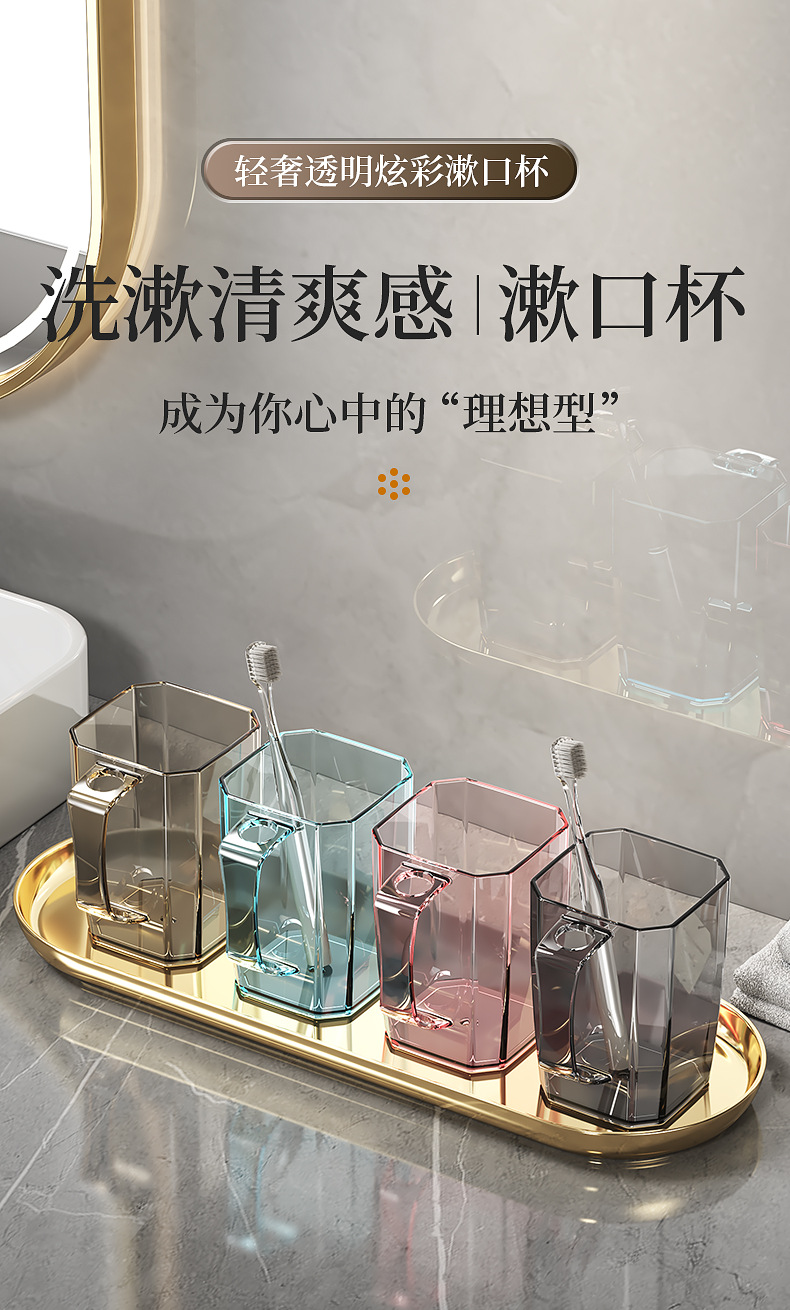 가벼운 고급 간단한 세척 컵 가정용 화장실 치약 칫솔 보관 칫솔 컵 투명 문자 문자 커플 가글 컵