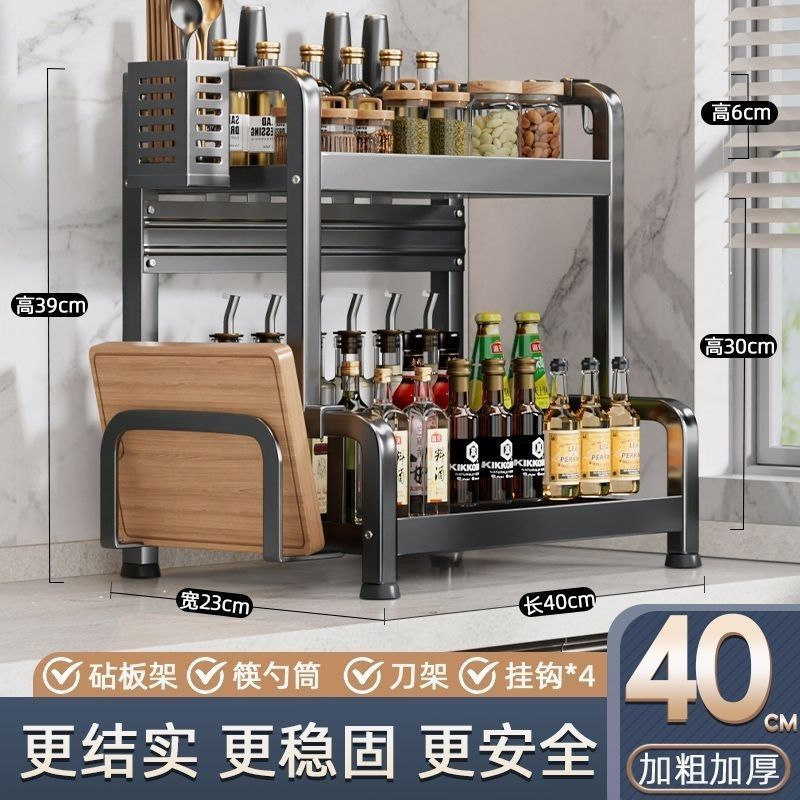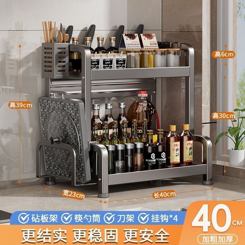 • [건그레이] + 두꺼워짐 - 칼꽂이 포함 2층 40cm + 고리 + 젓가락통 + 도마걸이