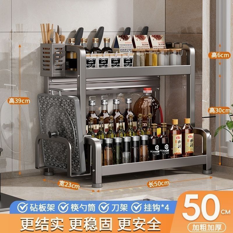 • [건그레이] + 두꺼워짐 - 칼꽂이 포함 2층 50cm + 고리 + 젓가락통 + 도마걸이