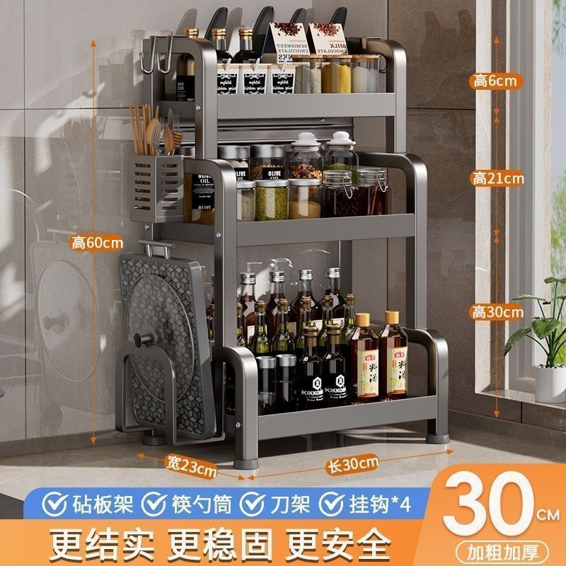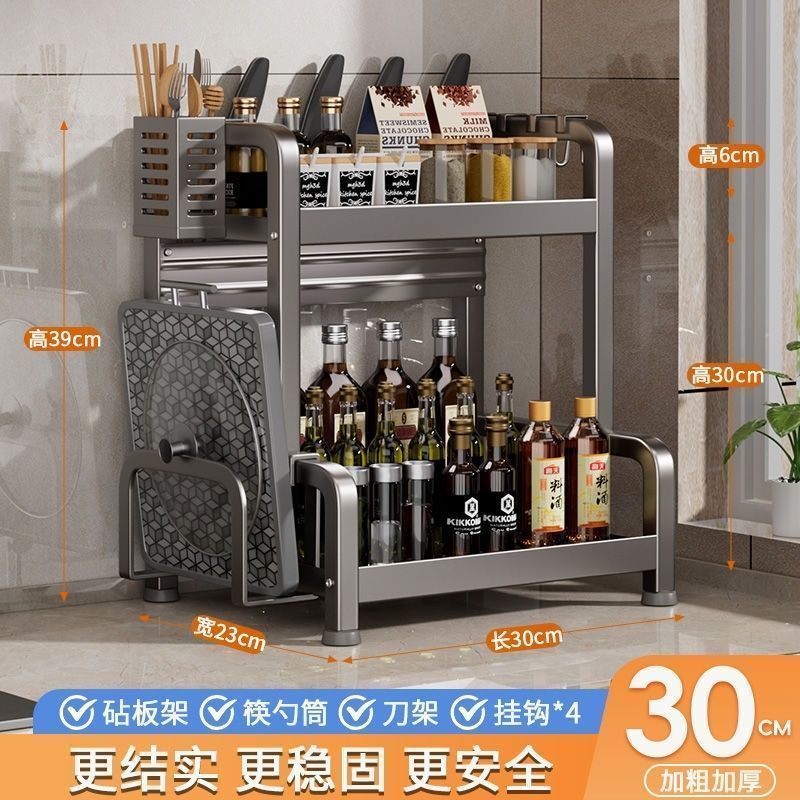 • [건그레이] + 두꺼워짐 - 칼꽂이 포함 2층 30cm + 고리 + 젓가락통 + 도마걸이