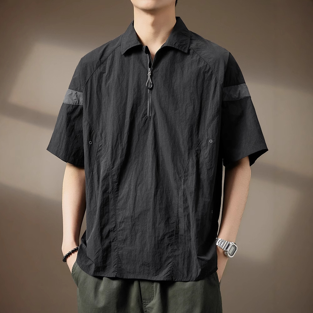 하이 엔드 마운틴 아웃 도어 아메리칸 레트로 반팔 폴로 셔츠 남자 여름 엘 퀵 건조 티셔츠 하프 지퍼 탑 남성스토어 가기