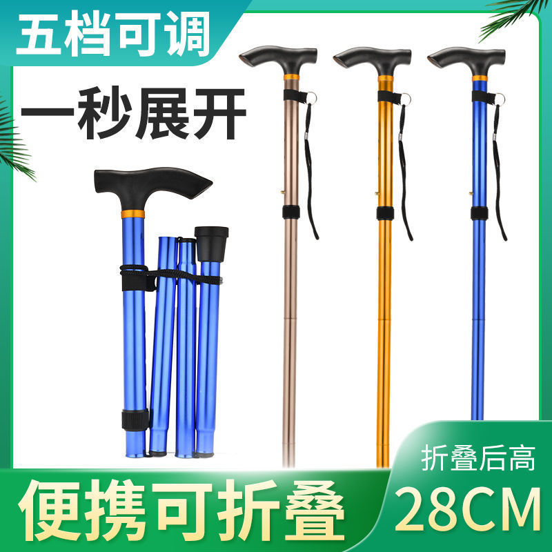 접이식 텔레스코픽 초경량 4섹션 스틱 크로스 컨트리 하이킹 야외 지팡이 휴대용 노인 지팡이 알루미늄 합금 하이킹 스틱스토어 가기