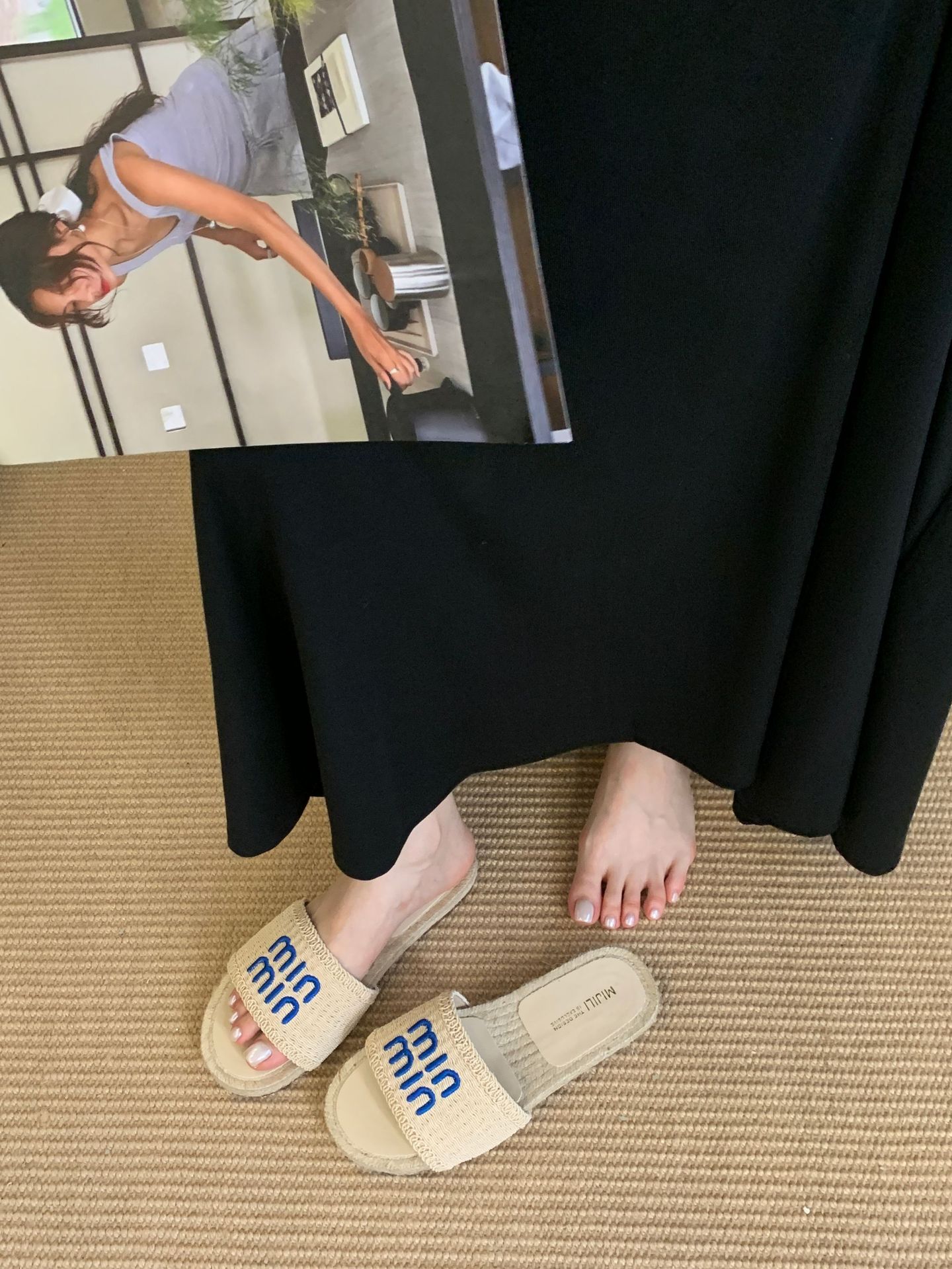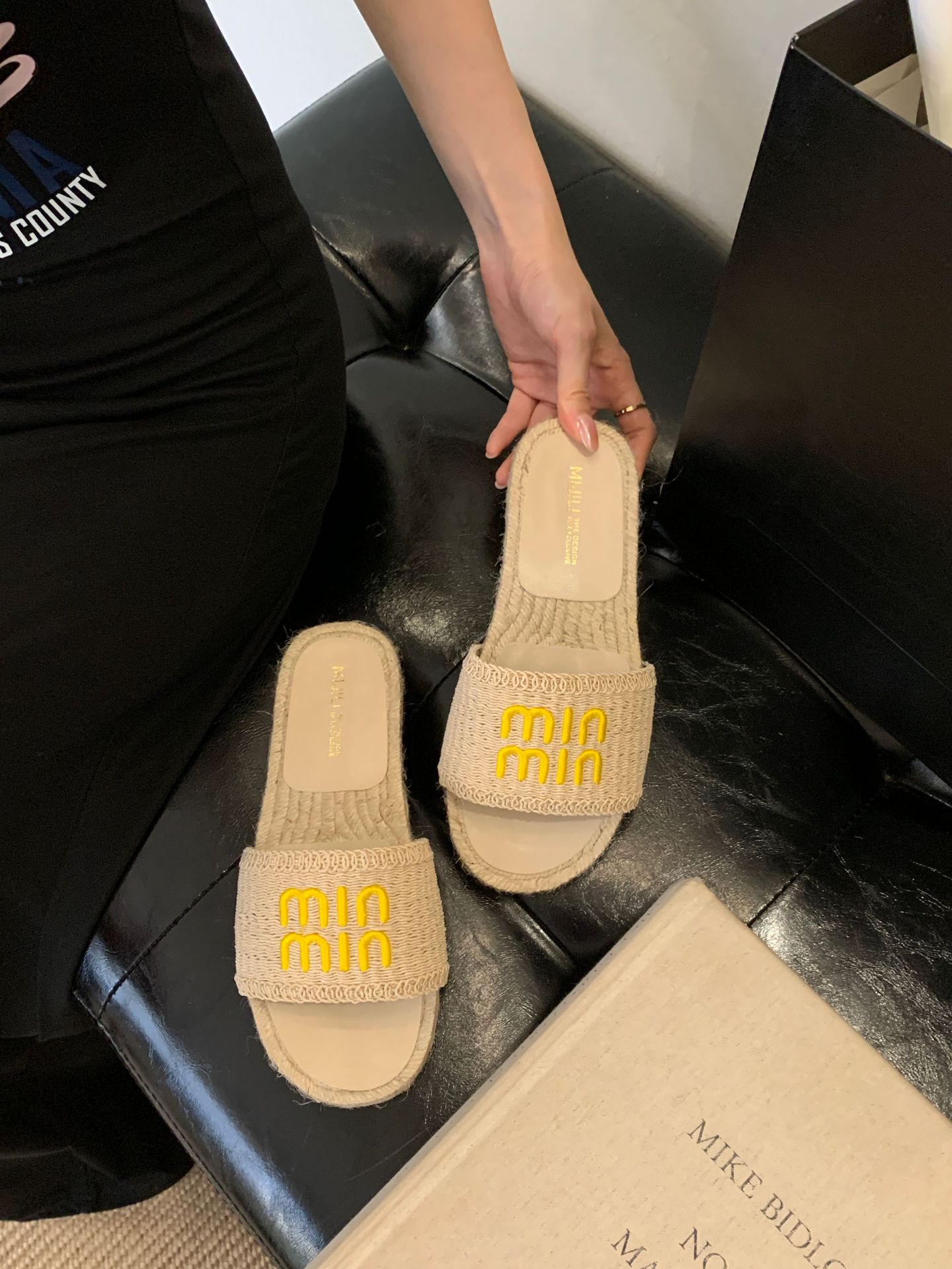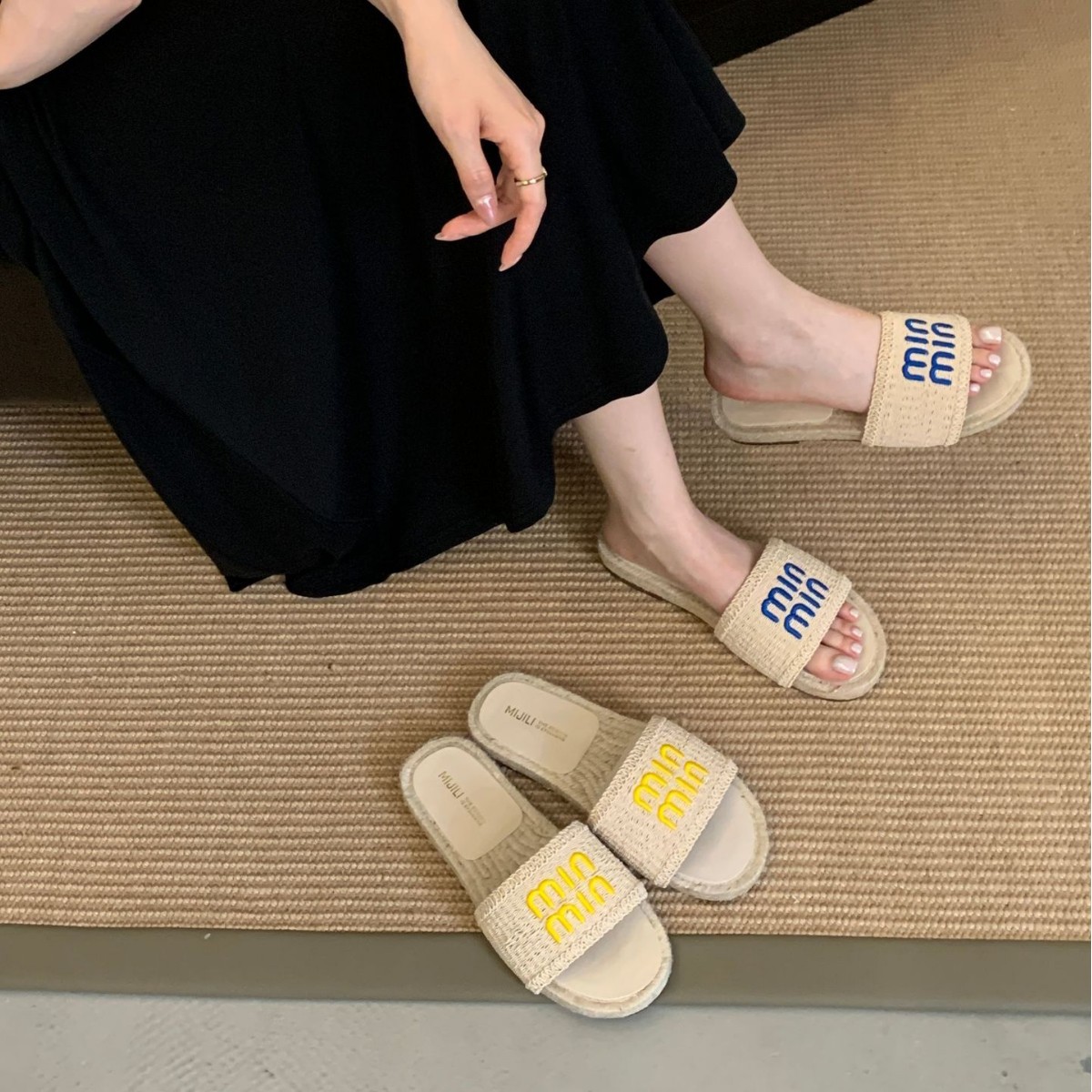 사이버 유명 두꺼운 바닥 어부 신발 슬리퍼 여성 신발 외부 착용 2025 새로운 여름 복고풍 짠 프렌치 샌들스토어 가기