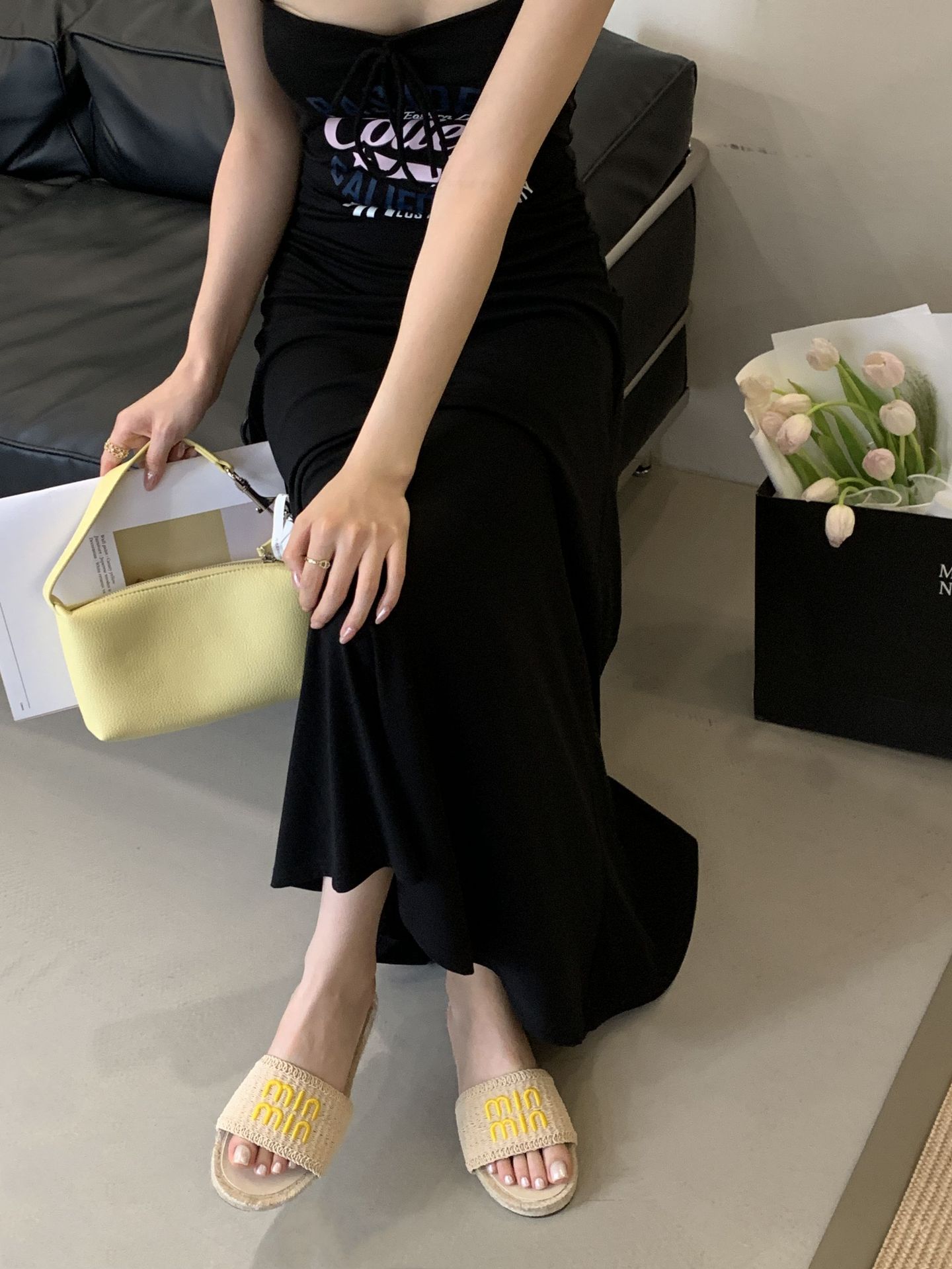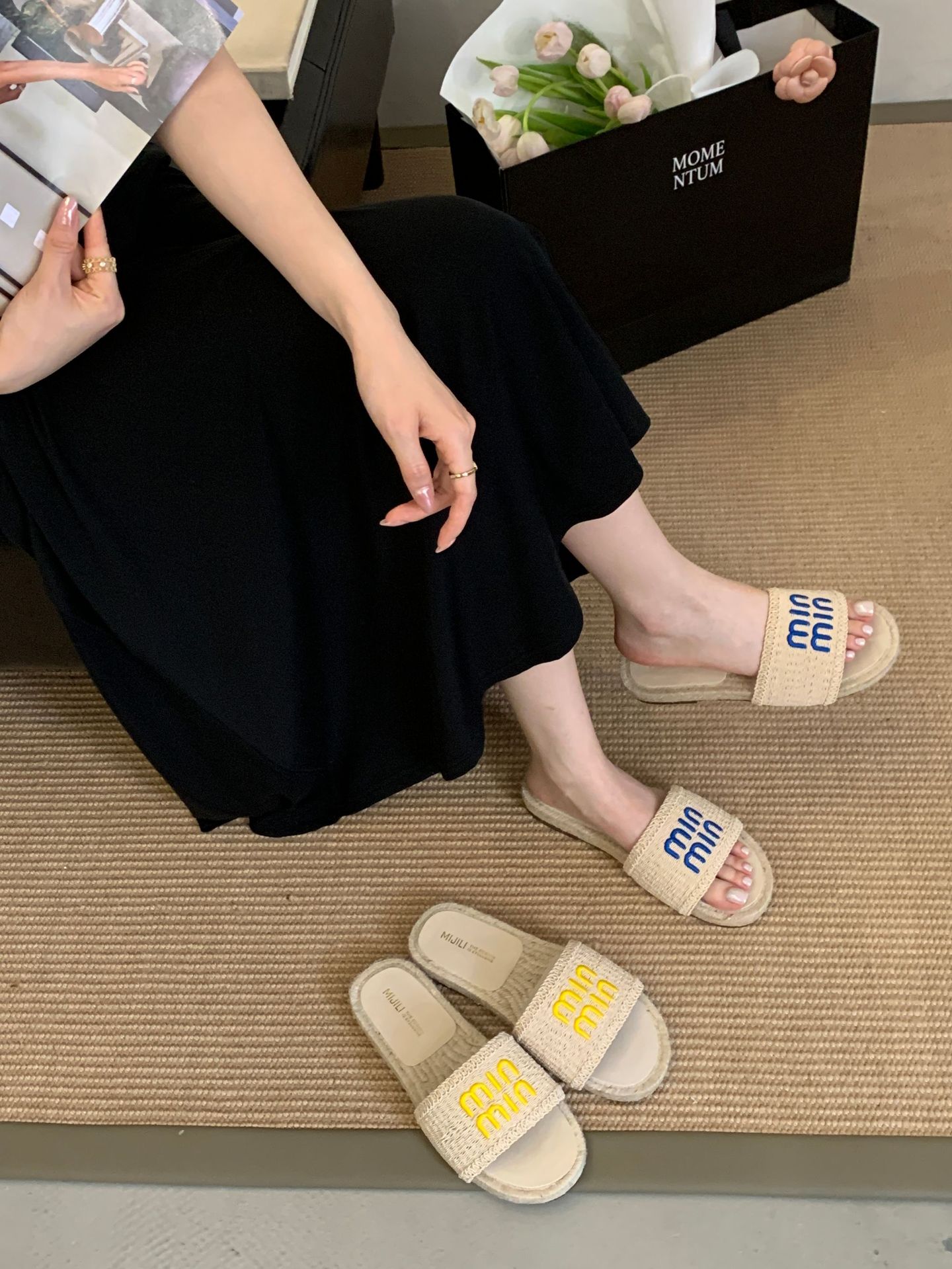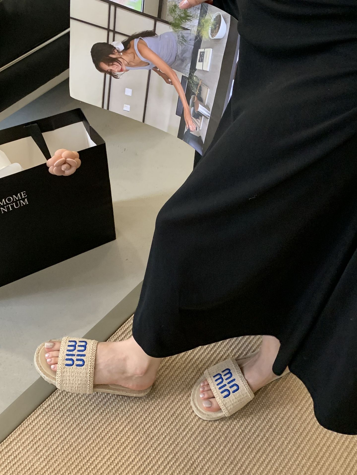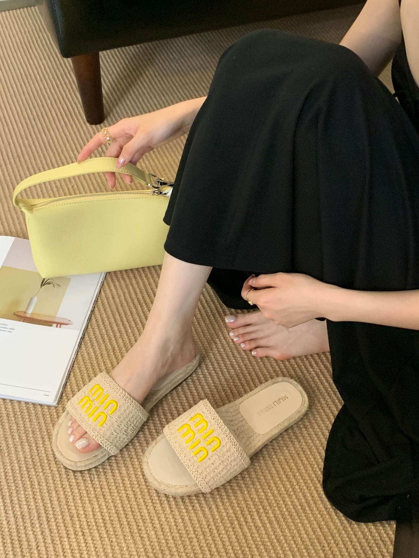 사이버 유명 두꺼운 바닥 어부 신발 슬리퍼 여성 신발 외부 착용 2025 새로운 여름 복고풍 짠 프렌치 샌들스토어 가기