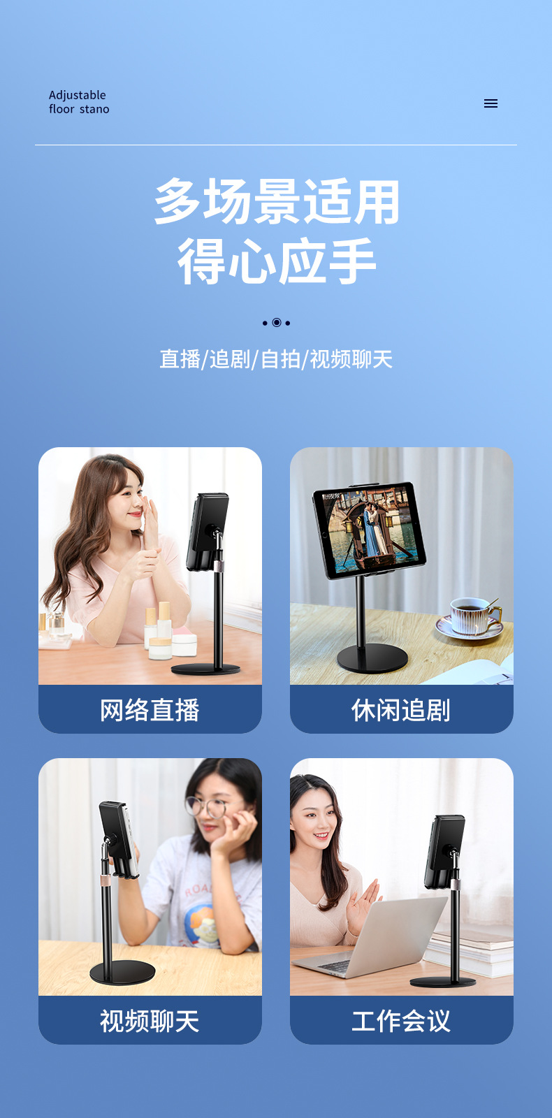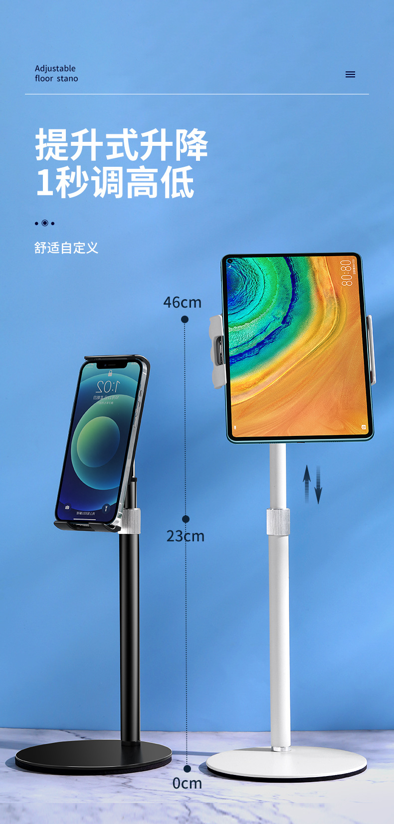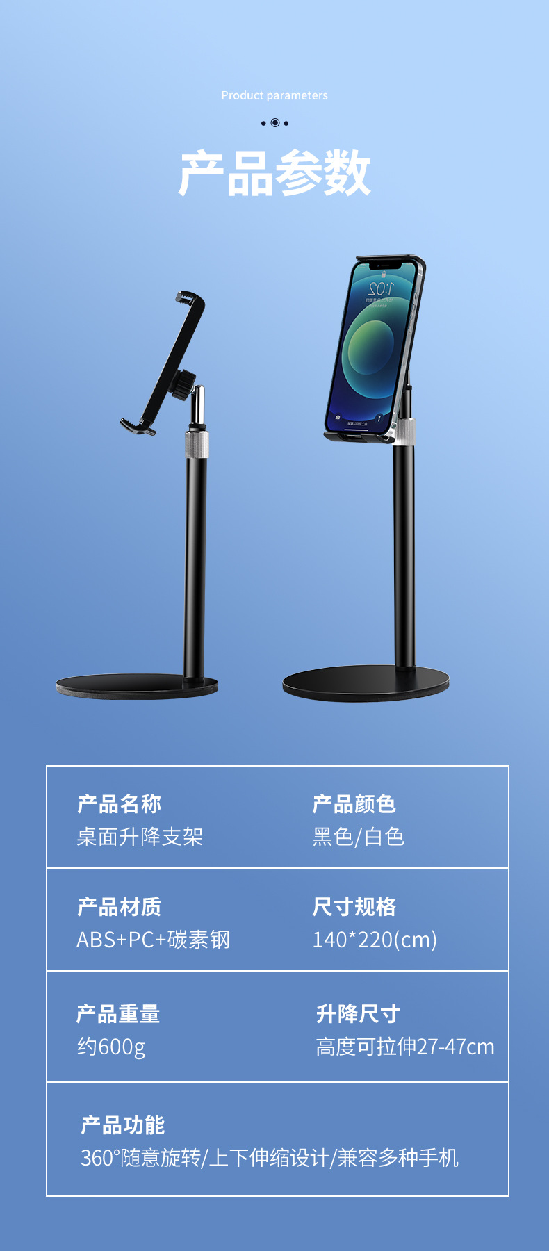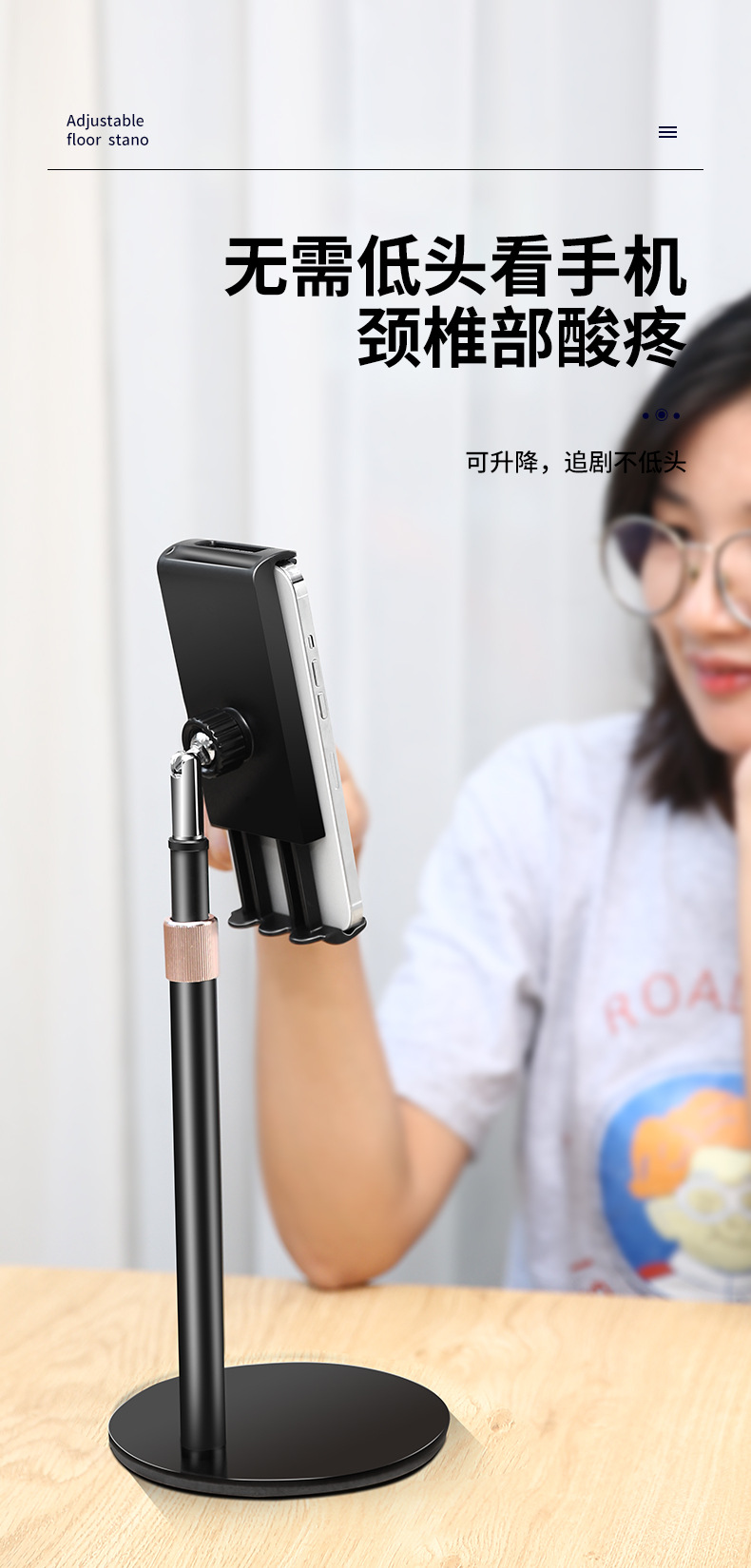 데스크톱 휴대 전화 스탠드 금속 하단 게으른 스탠드 라이브 셀카 아티팩트 온라인 클래스 회의 망원경 조정 가능한 최고 촬영