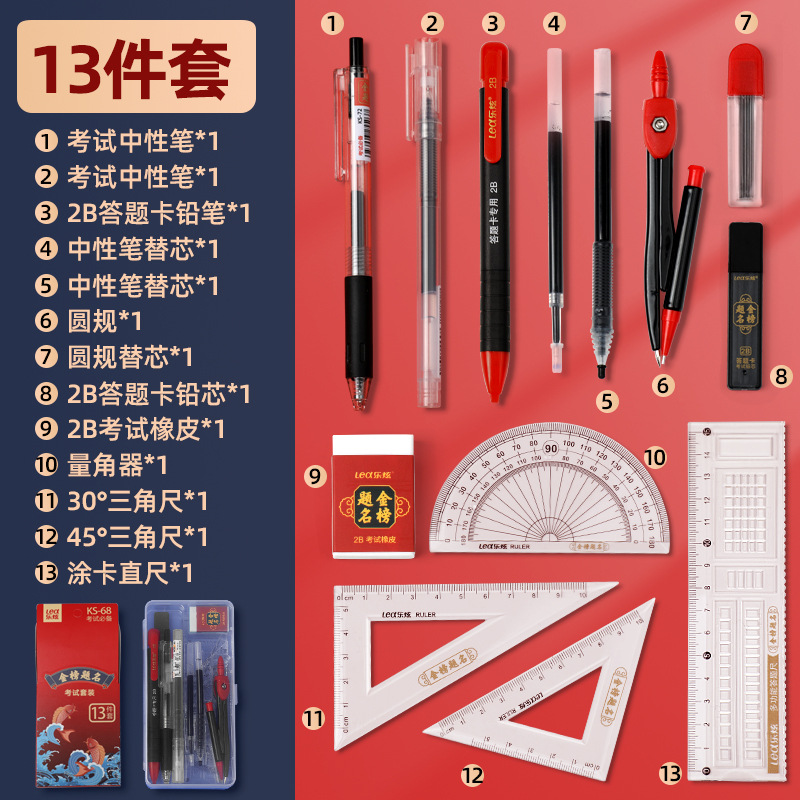 13피스 시험 문구 세트 2연필 시험 2 카드펜 고등학교 입시 문구 세트 답안지 펜 성인용스토어 가기