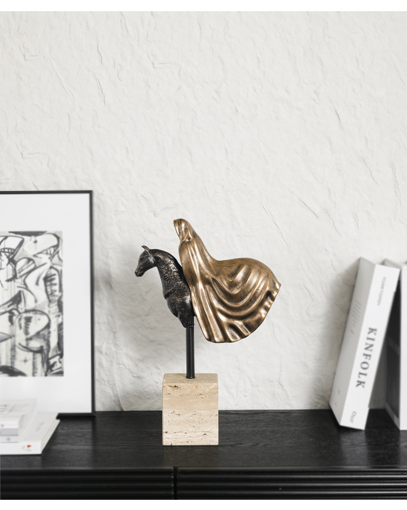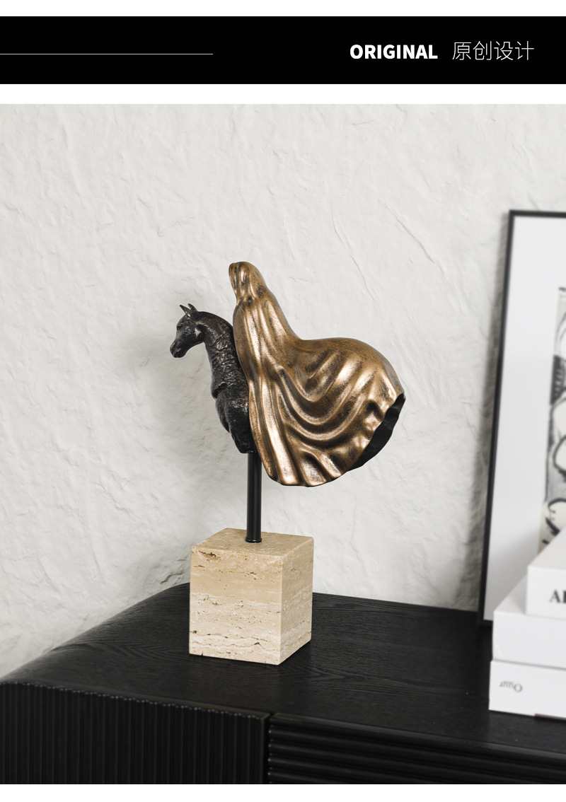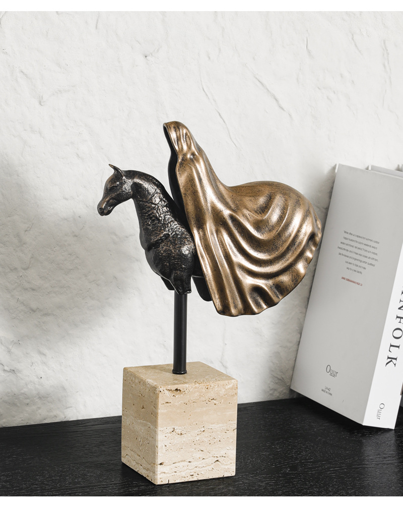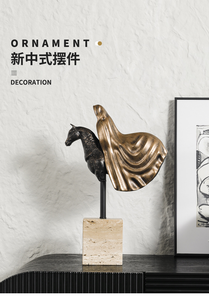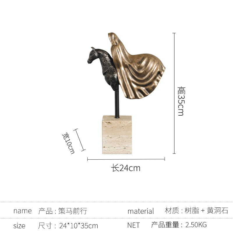 가벼운 럭셔리 창조적 인 말 머리 조각 장식품 모델 룸 입구 거실 부드러운 가정용 액세서리 TV 캐비닛 장식품 연구