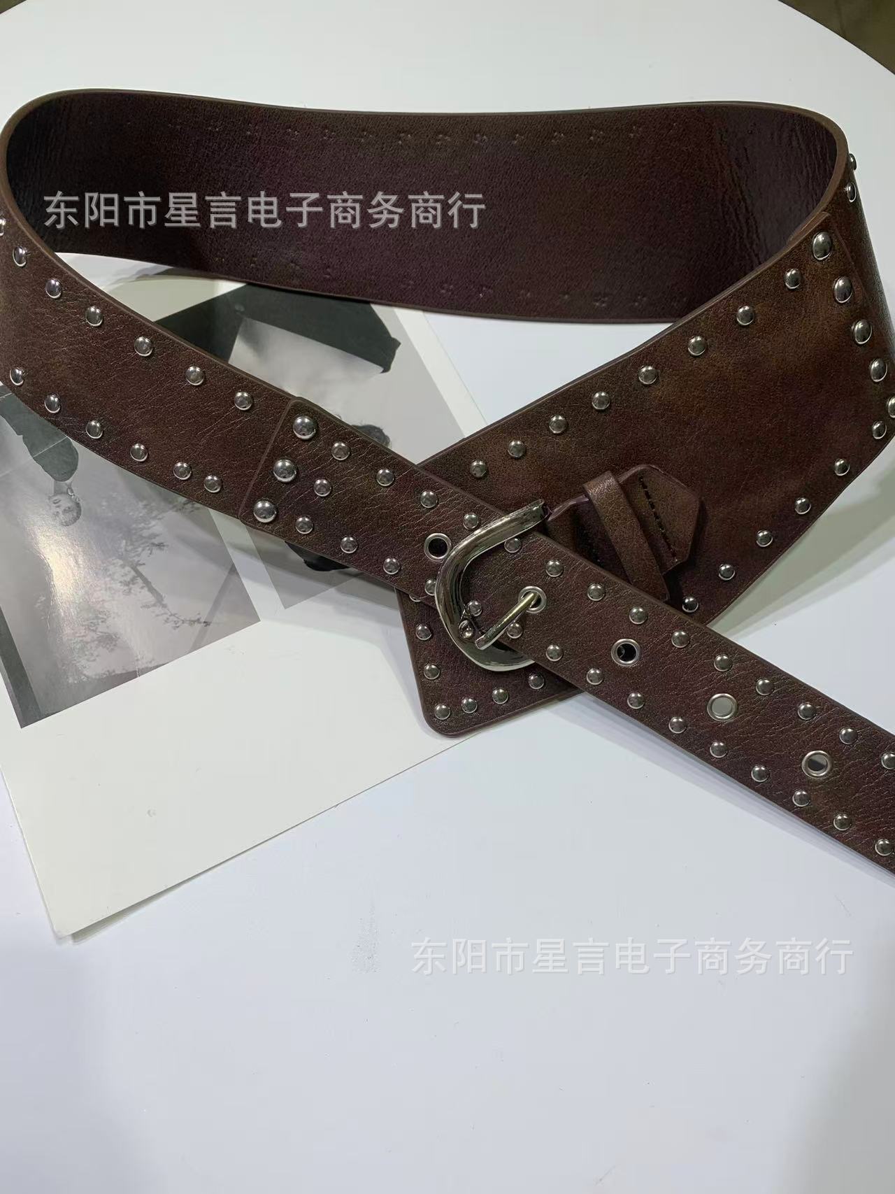 레트로 유럽과 미국 스타일의 크로스 보더 가죽 리벳 핀 버클 조절 가능한 허리 벨트 2025 트렌디한 맞춤형 여성용 허리 벨트스토어 가기