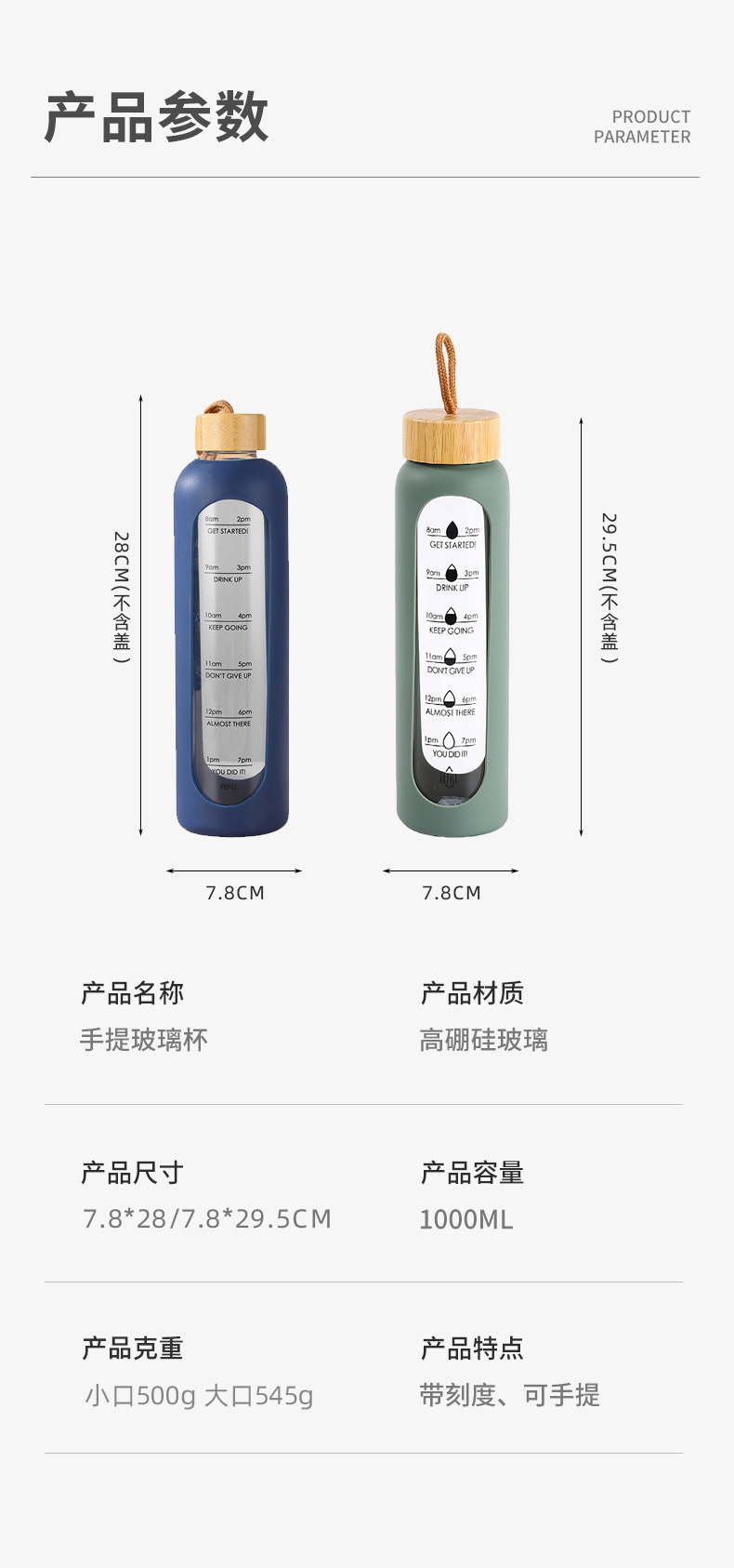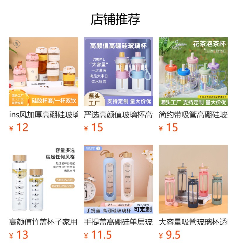 1000ml 눈금이 있는 고붕규산 유리컵 단층 고온 저항 방폭 물컵 휴대용 방폭 유리컵 맞춤 제작스토어 가기