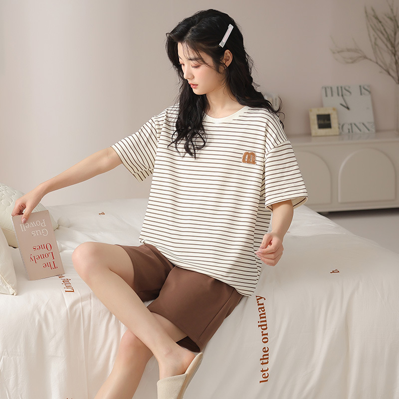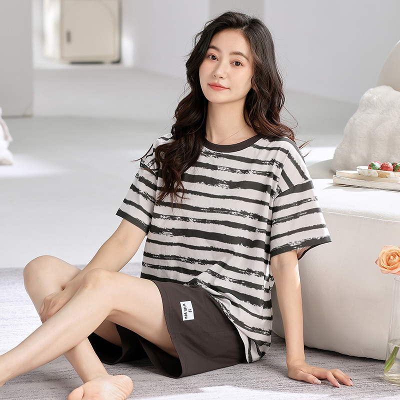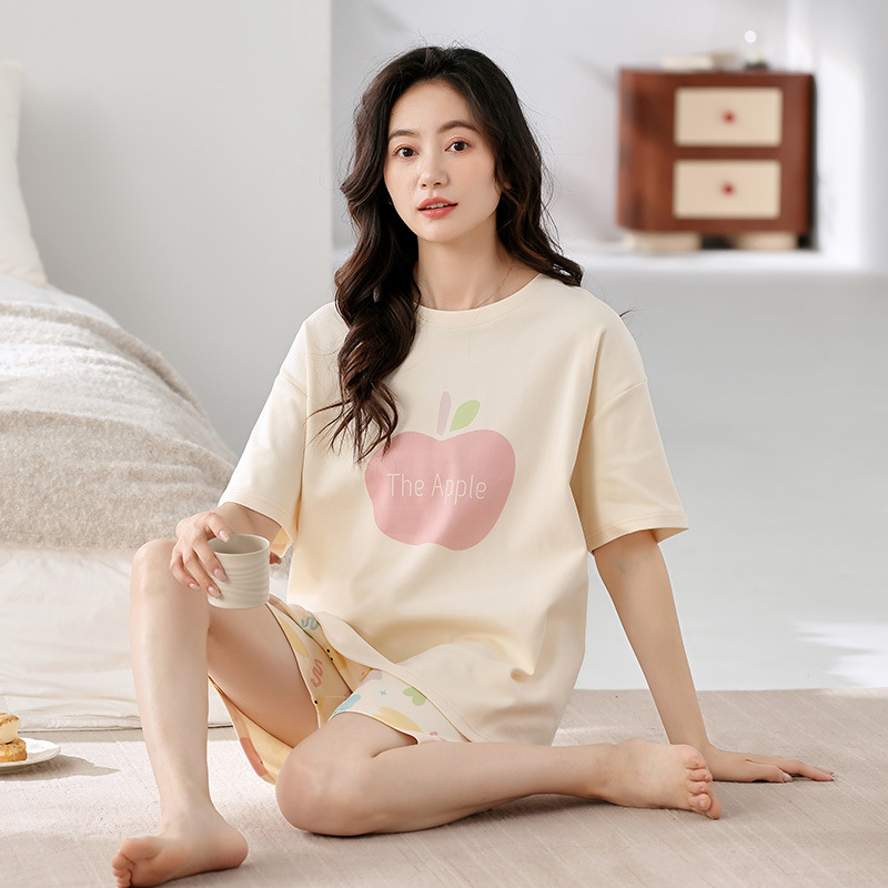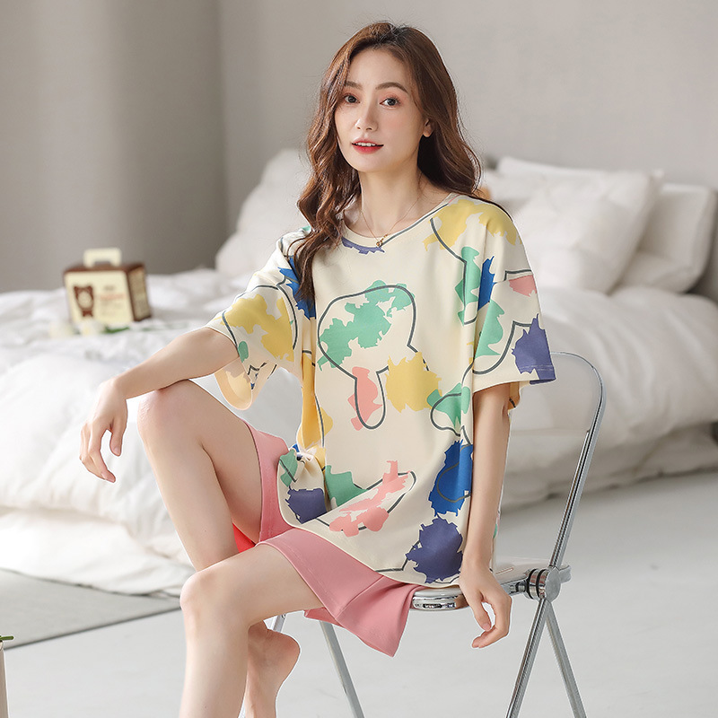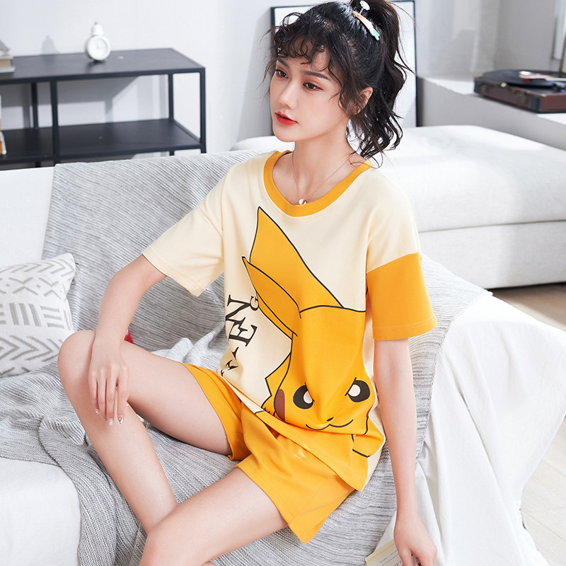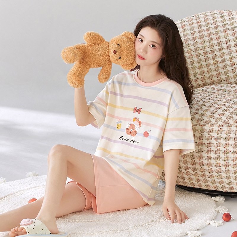 2026년 신상 여름 순면 반팔 반바지 여성 잠옷, 순면 캐주얼 만화 캐릭터 학생 홈웨어 세트스토어 가기