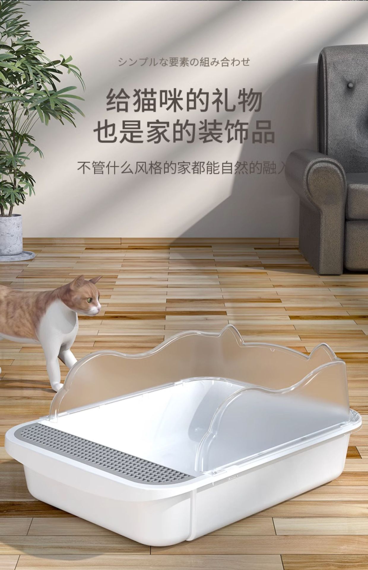 • 업그레이드된 귀고양이 배변 상자 [그레이]