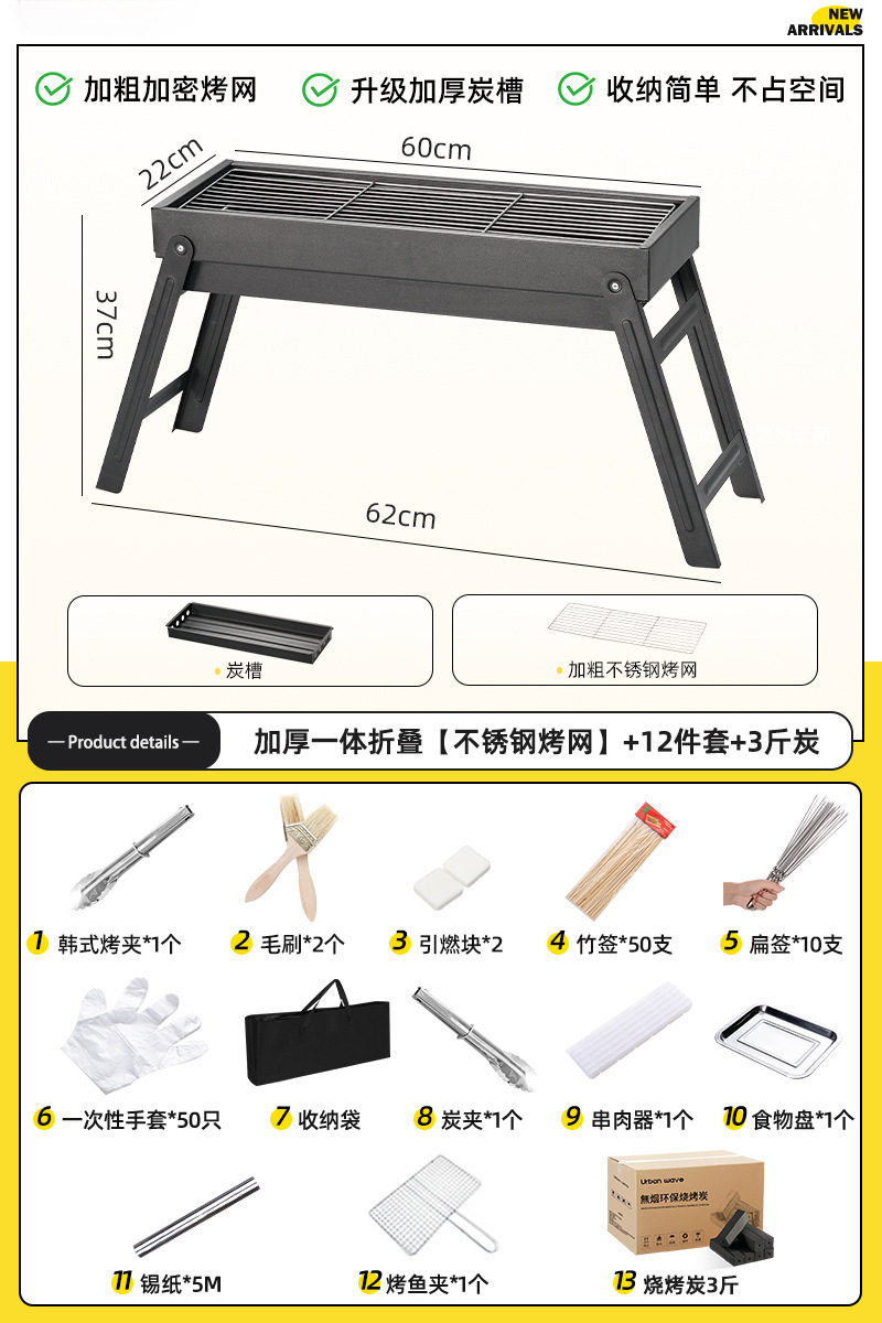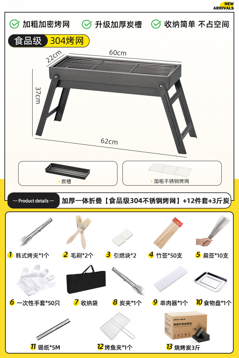 • 두꺼워진 일체형 업그레이드 및 강화 [두꺼운 304 스테인레스 스틸 그릴 메쉬] 무료 12종 세트 + 숯 1.5kg개