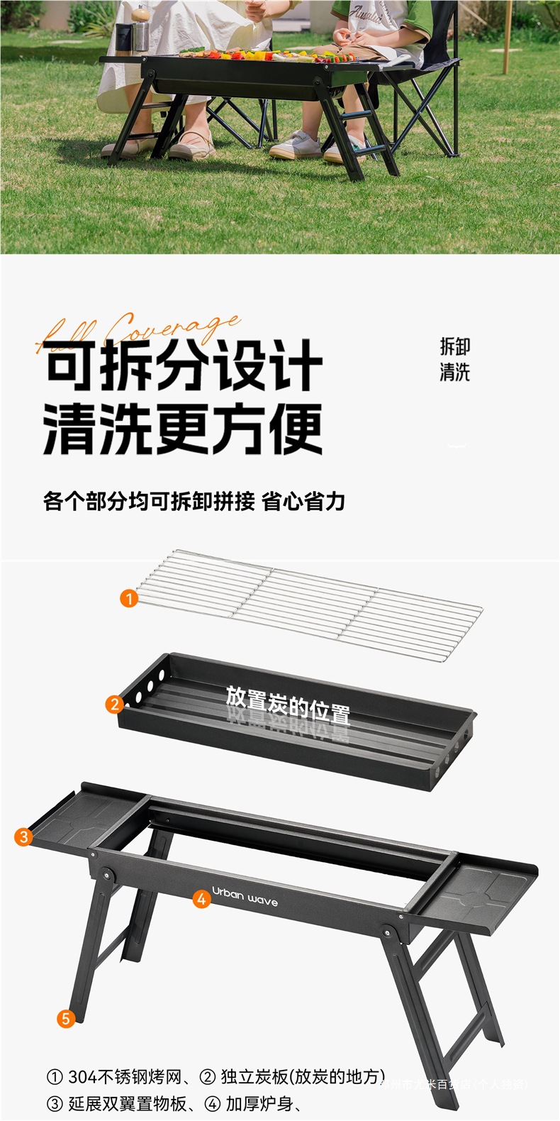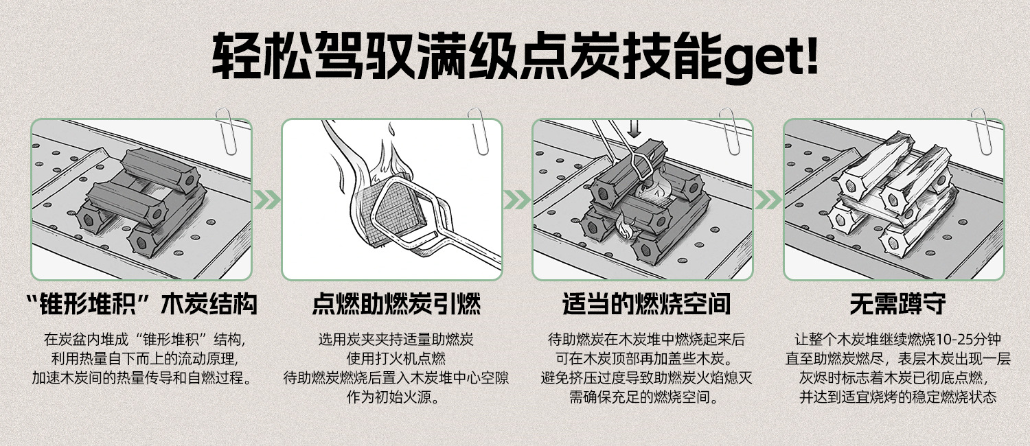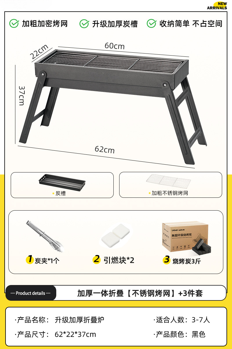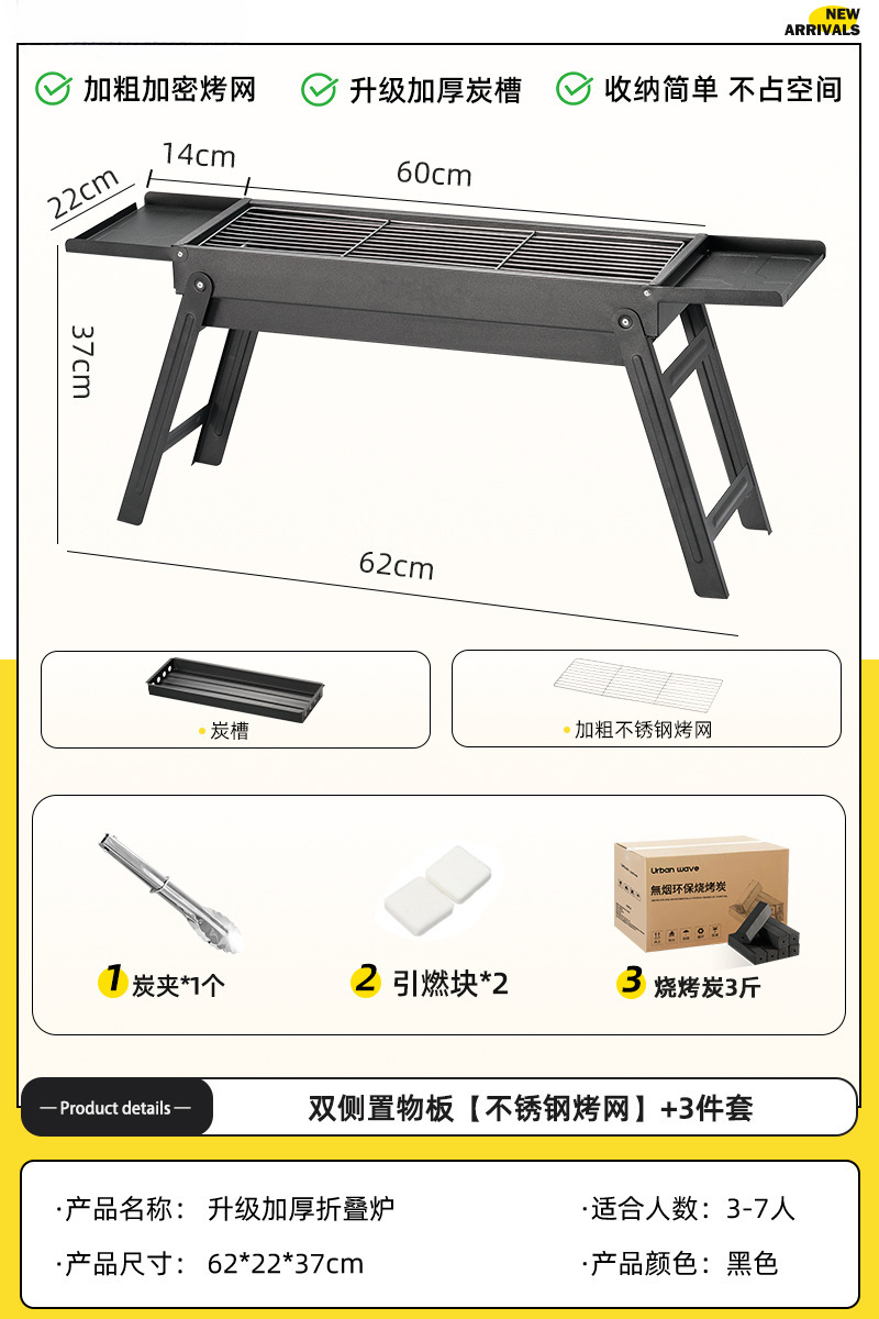 • 업그레이드 및 강화된 이중 날개 수납판 [두꺼운 스테인레스 스틸 그릴 메쉬] 무료 10개 세트 + 숯 1.5kg개