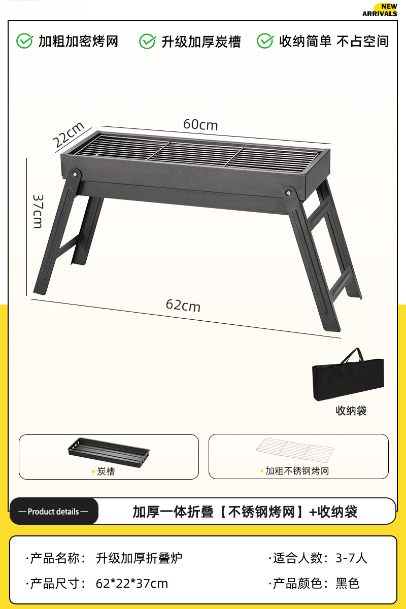 Yumi 야외 바베큐 그릴 야외 접이식 바베큐 그릴 휴대용 가정용 스테인레스 스틸 바베큐 스토브 캠핑 숯스토어 가기